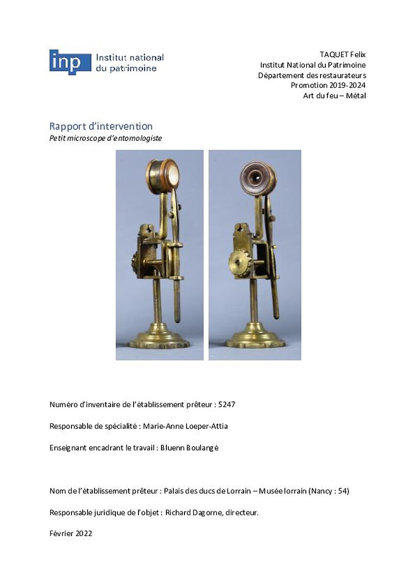 Beaumont, Anna, "Étude et conservation-restauration d’une statuette -portrait en laiton doré et argenté de l’actrice Rachel par Jean-Auguste Barre (1847 ; Musée Carnavalet, Paris). Étude comparative d’adsorbants dans un milieu confiné pour la protection de l’argent con…", Médiathèque numérique de l'Inp, 30 septembre 2024 (consulté le 09 janvier 2026), https://mediatheque-numerique.inp.fr/documentation-oeuvres/memoires-diplome-restaurateurs-patrimoine/etude-conservation-restauration-dune-statuette-portrait-en-laiton-dore-argente-lactrice-rachel-par-jean-auguste-barre-1847-musee