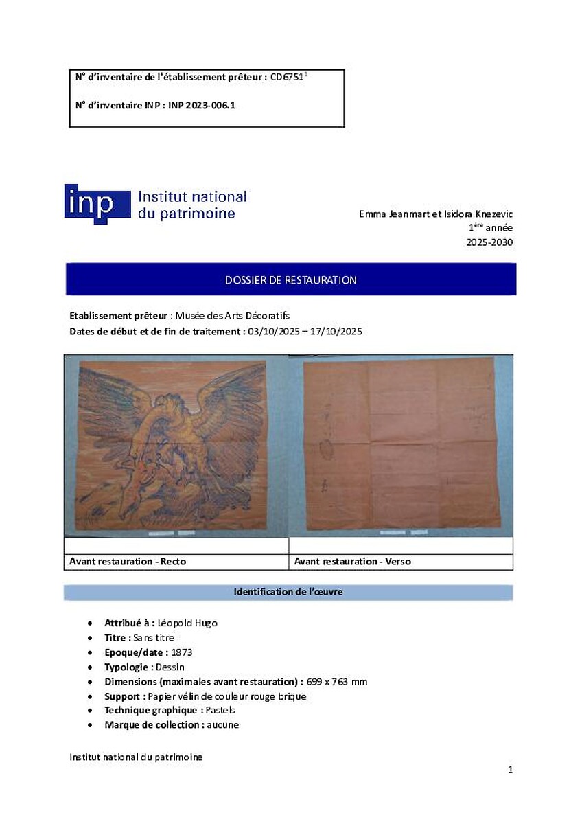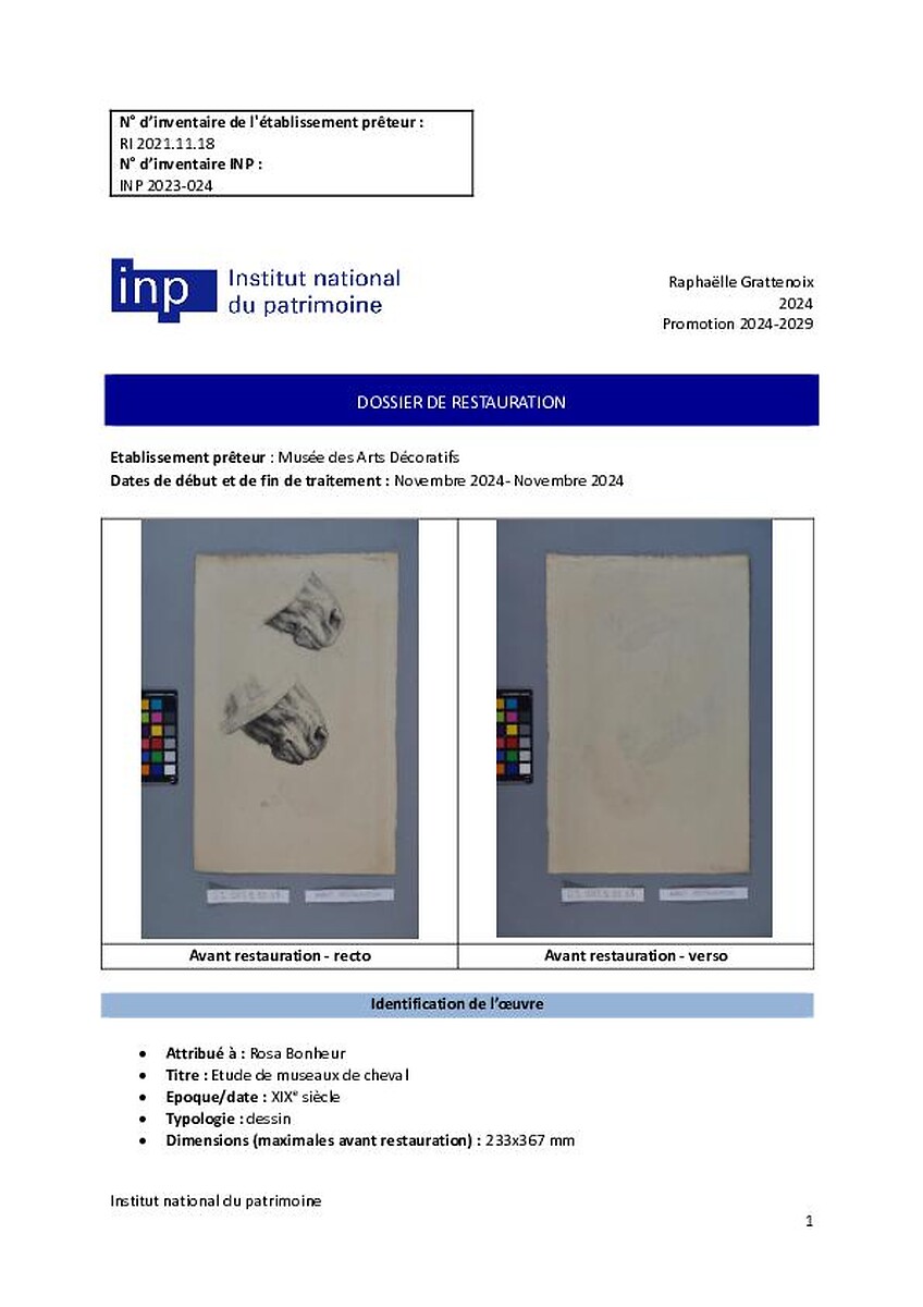 Basset, Laura, " Étude et conservation-restauration de trois katagami (Japon, XIXe – début XX e siècle; Musée des Arts Décoratifs de Paris) Mise au point d’une méthode de consolidation locale au moyen de fibres de papier japonais . Comparaison d’adhésifs.…", Médiathèque numérique de l'Inp, 01 octobre 2025 (consulté le 16 février 2026), https://mediatheque-numerique.inp.fr/documentation-oeuvres/memoires-diplome-restaurateurs-patrimoine/etude-conservation-restauration-trois-katagami-japon-xixe-debut-xx-e-siecle-musee-arts-decoratifs-paris-mise-au-point-dune-methode