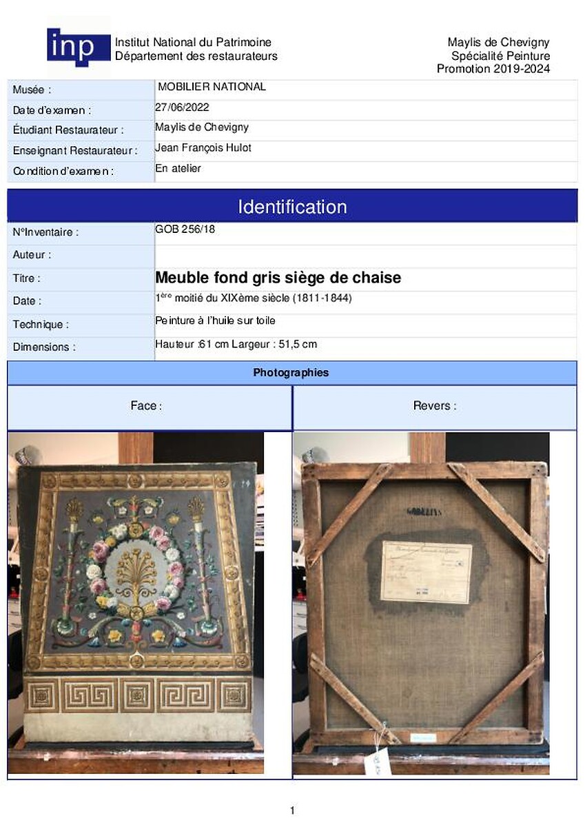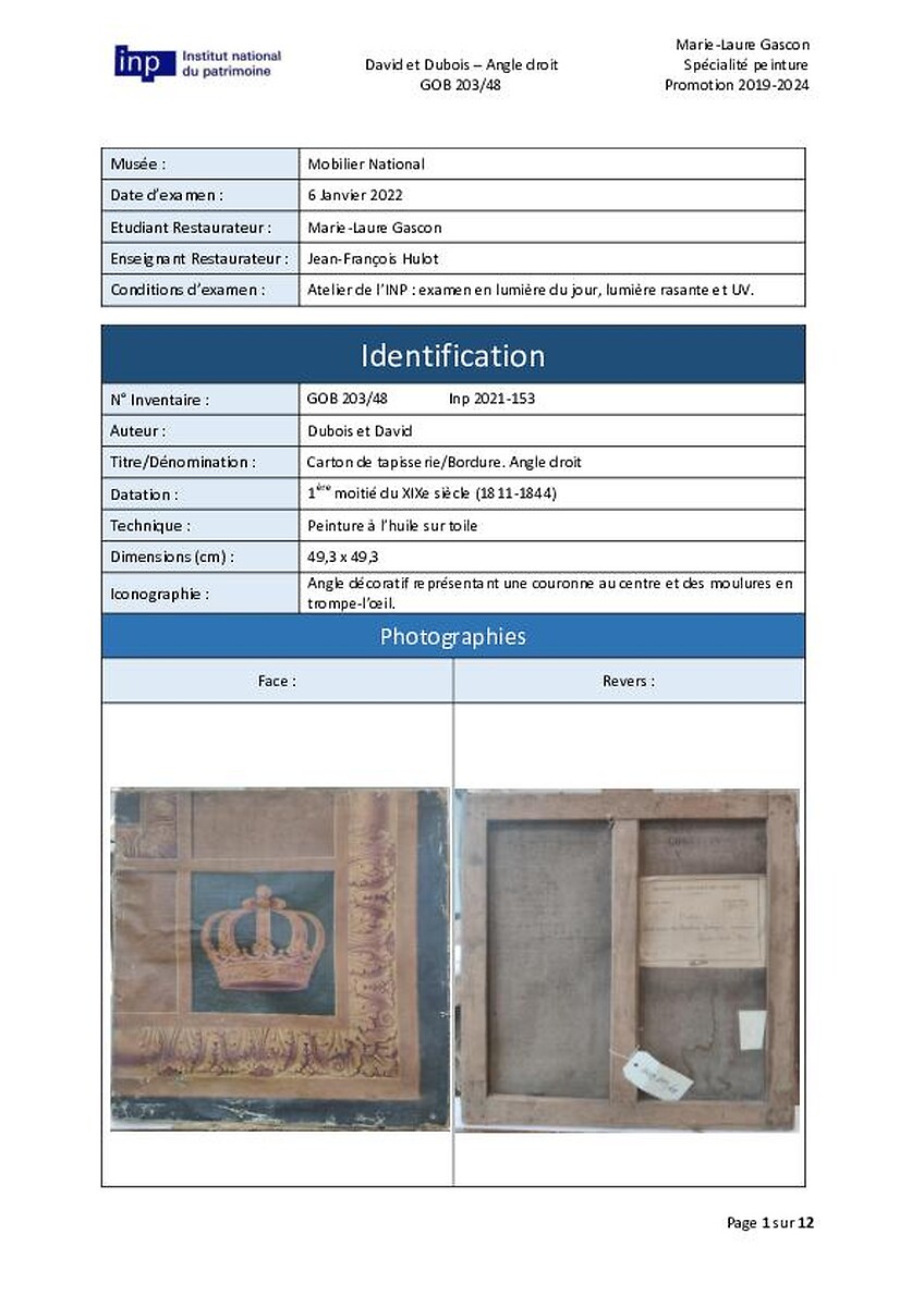 Travail étudiant réalisé à l'Inp dans le cadre de la formation de restaurateur du patrimoine.