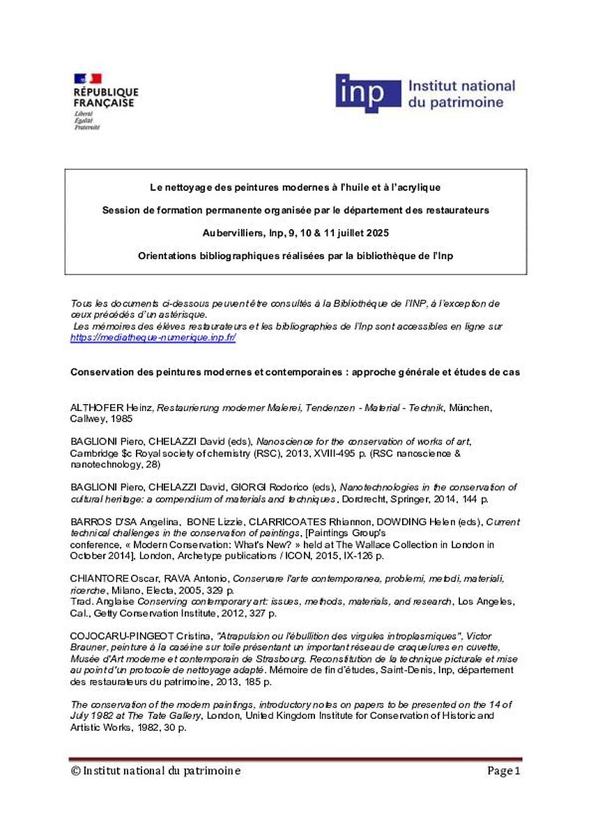 "Métier de conservateur", Médiathèque numérique de l'Inp, 11 septembre 2025 (consulté le 09 janvier 2026), https://mediatheque-numerique.inp.fr/documentation-pedagogique/orientations-bibliographiques/metier-conservateur
