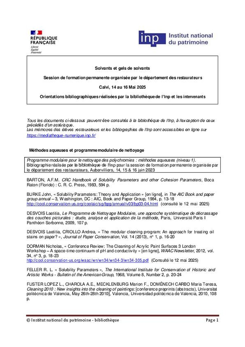Cette bibliographie a été réalisée dans le cadre d'un module d'enseignement ou d'une formation à destination des professionnels du patrimoine. Elle n’a pas prétention à être exhaustive mais propose les références de quelques outils essentiels, faciles à se procurer, pour aider ces professionnels dans leurs missions.