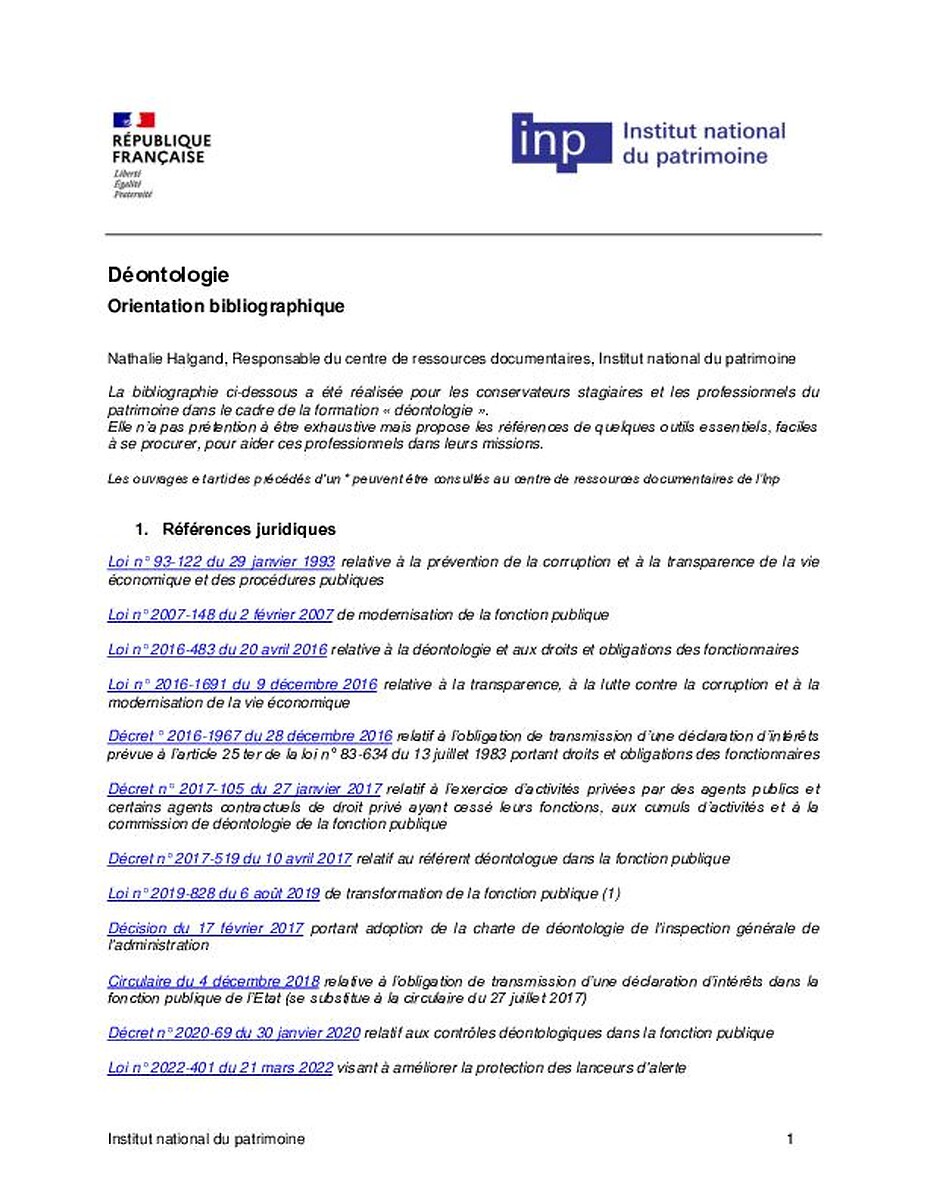 Cette bibliographie a été réalisée dans le cadre d'un module d'enseignement ou d'une formation à destination des professionnels du patrimoine. Elle n’a pas prétention à être exhaustive mais propose les références de quelques outils essentiels, faciles à se procurer, pour aider ces professionnels dans leurs missions.