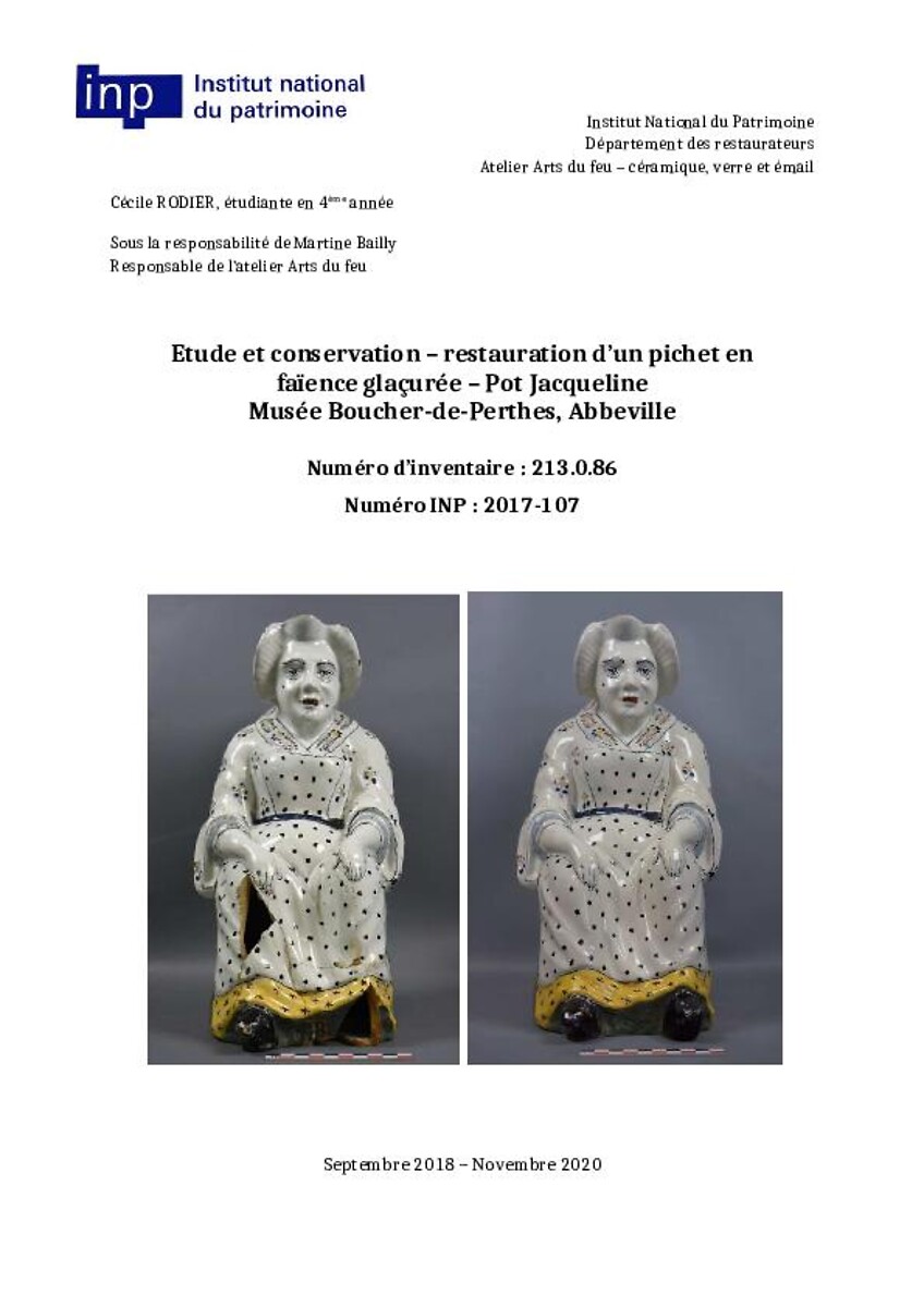 Etude et conservation – restauration d’un pichet en faïence glaçurée – Pot Jacqueline Musée Boucher-de-Perthes, Abbeville