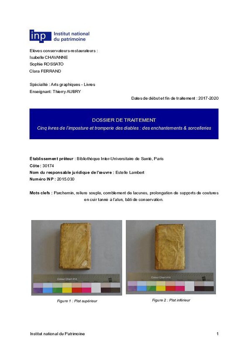 Dossier de traitement: "Cinq livres de l’imposture et tromperie des diables : des enchantements & sorcelleries"