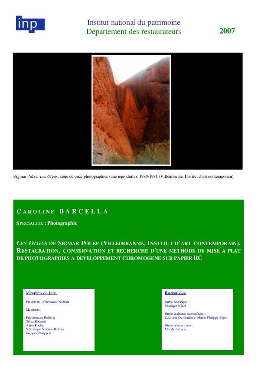 les Olgas de Sigmar Polke (Villeurbanne, Institut d'art contemporain) : restauration, conservation et recherche d'une méthode de mise à plat de photographies à développement chromogènes sur papier RC