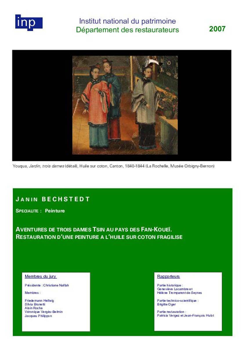Aventures de trois dames tsin au pays des fan-koueï : restauration d 'une peinture à l'huile sur coton fragilisé