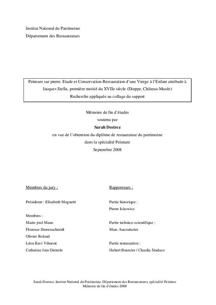 Peinture sur pierre. Etude et conservation-restauration d'une Vierge à l'enfant attribuée à Jacques Stella, première moitié du XVIIe siècle : recherche appliquée au collage du support