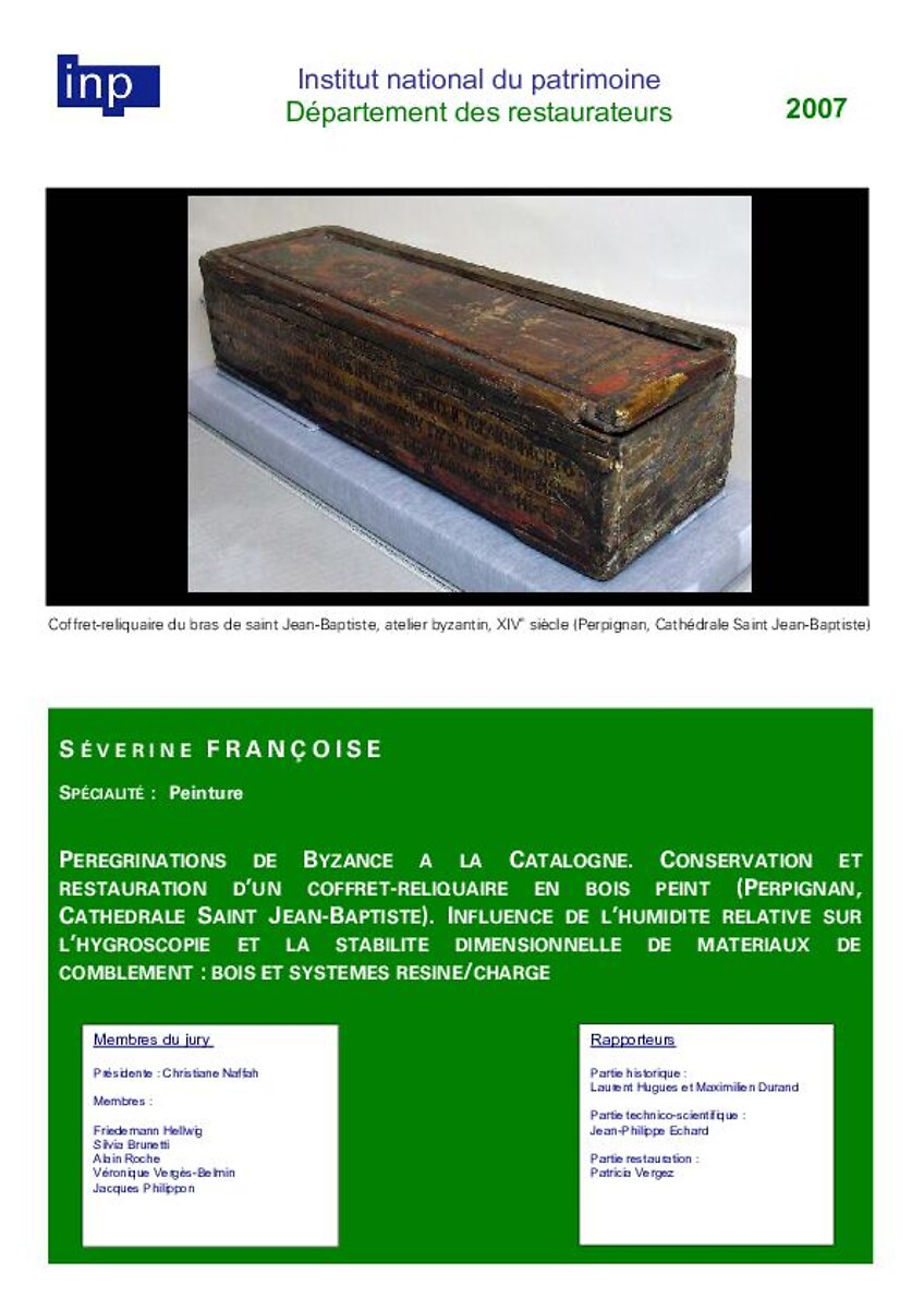 Pérégrinations de Byzance à la Catalogne. Conservation et restauration d'un coffret-reliquaire en bois peint (Perpignan, Cathédrale Saint Jean-Baptiste) : influence de l'humidité relative sur l'hygroscopie et la stabilité dimensionnelle de matériaux de c…