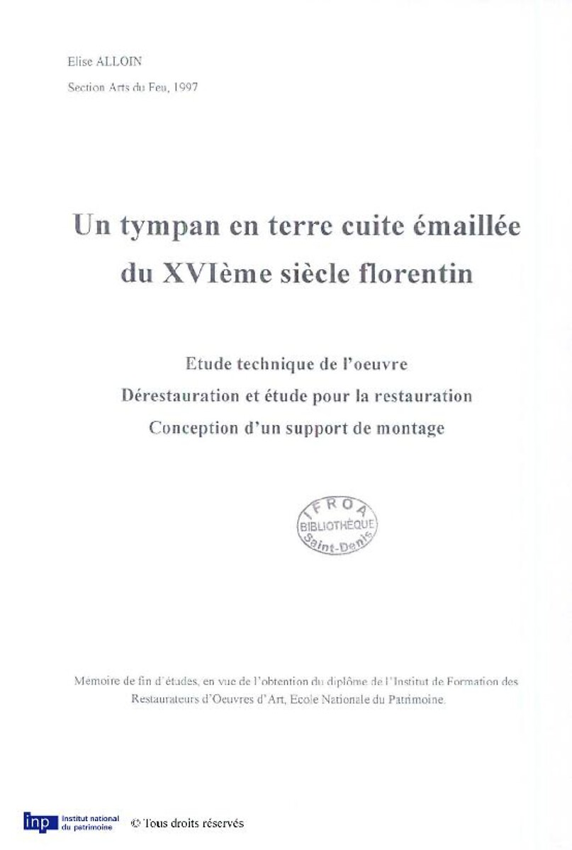Un tympan en terre cuite émaillée du XVIe siècle florentin. Etude technique de l'œuvre. Dérestauration et étude pour la restauration. Conception d'un support de montage