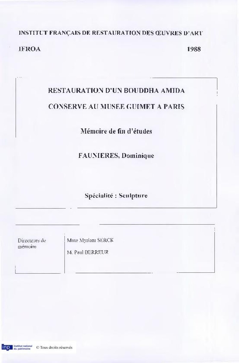 Dossier de restauration de la sculpture d'un bouddha Amida conservé au Musée Guimet,1988