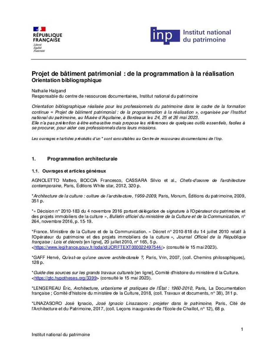 Programmation, construction, aménagement de bâtiments patrimoniaux