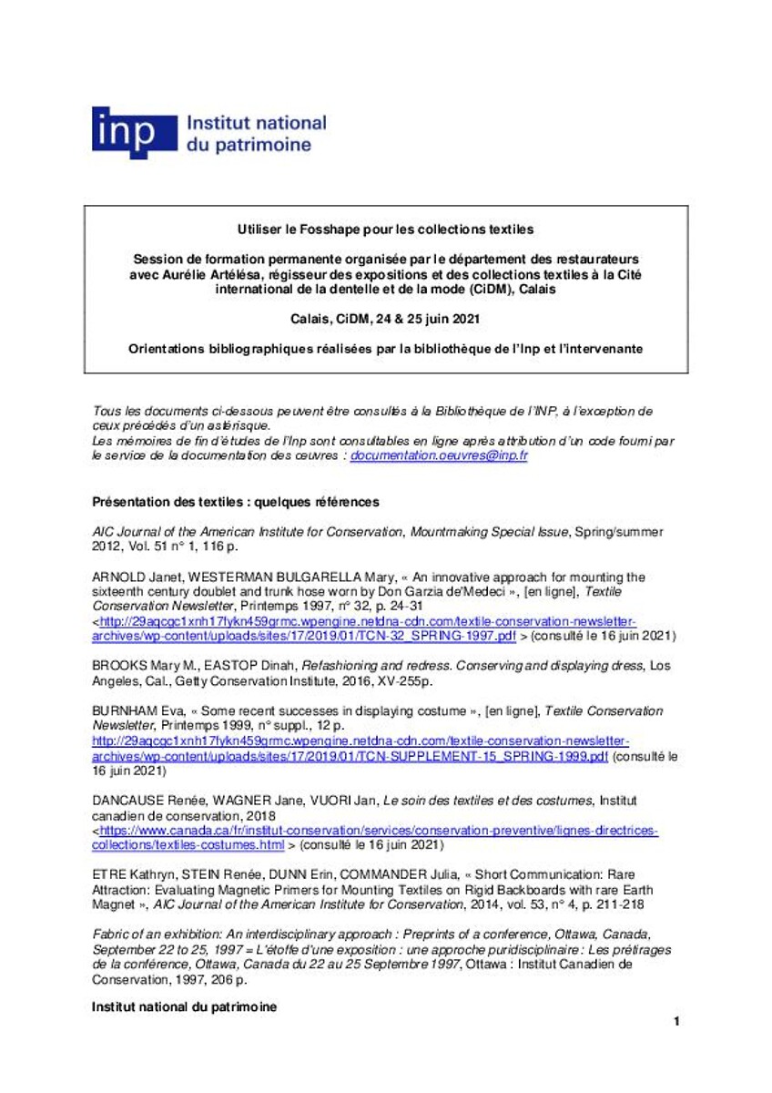 Textiles : constat d’état, manipulation, conditionnement et notions de base pour leur présentation
