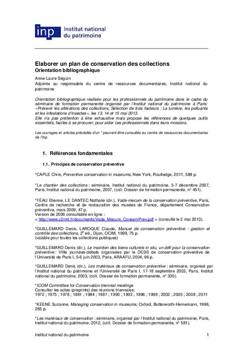 Elaborer un plan de conservation des collections