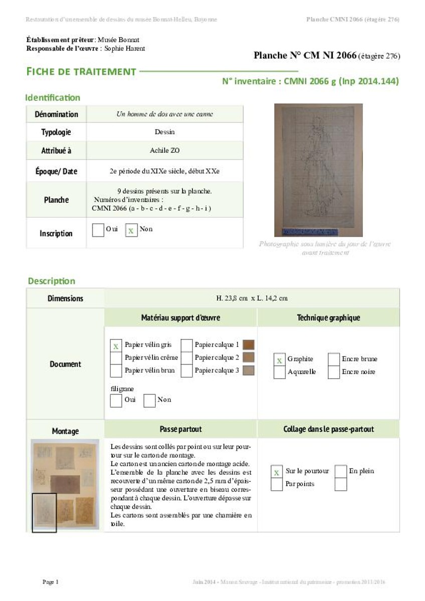 Fiche de traitement, (Un homme de dos avec une canne, (Dessin attribué à Achille Zo)