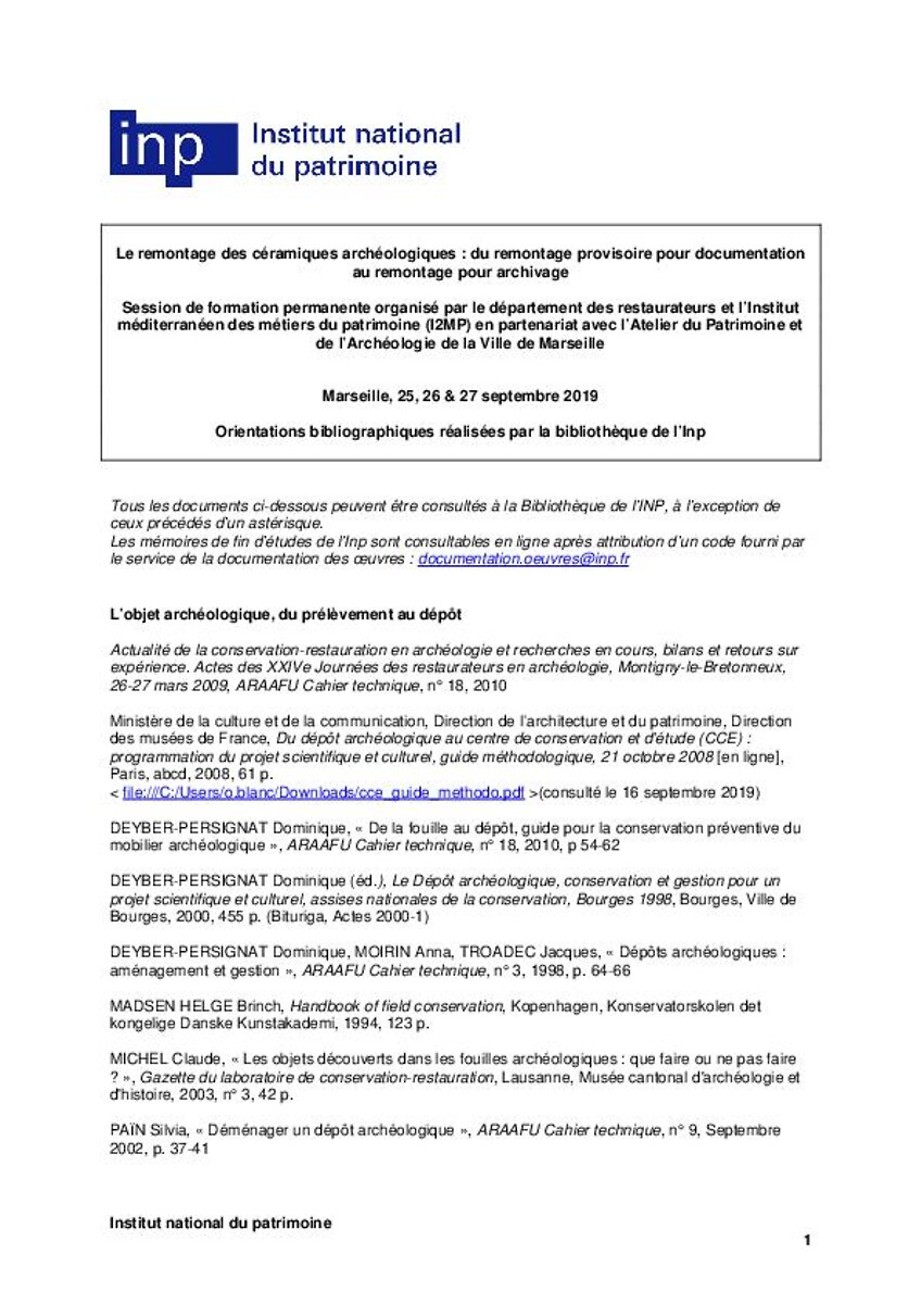 Remontage des céramiques archéologiques : Du remontage provisoire pour documentation au remontage pour archivage