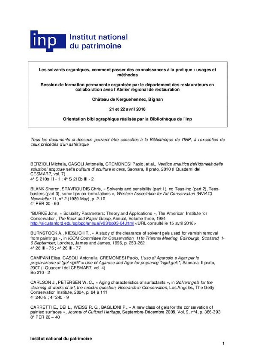 Mémoires de diplôme des restaurateurs du patrimoine