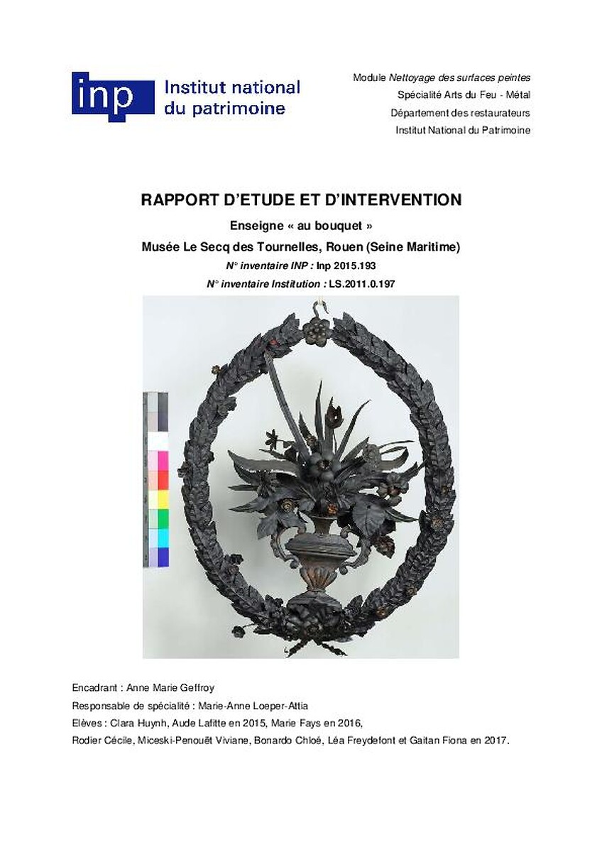 Rapport d'étude et d'intervention: Enseigne "au bouquet"