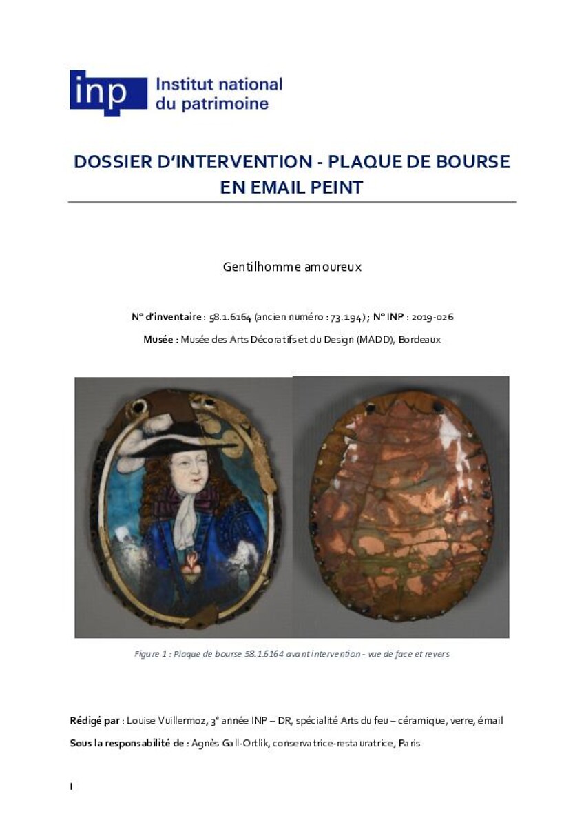Dossier d'intervention-Gentilhomme amoureux (Plaque de bourse en émail peint)