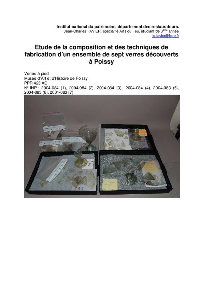 Etude de la composition et des techniques de fabrication d'un ensemble de sept verres découverts à Poissy