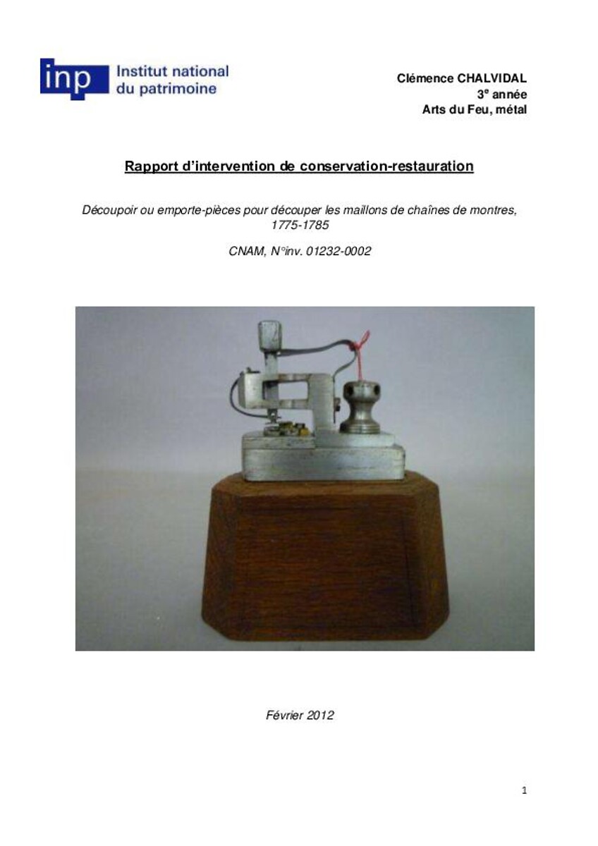 Rapport d’intervention de conservation-restauration Découpoir ou emportepièces pour découper les maillons de la chaîne de montres 1775-1785