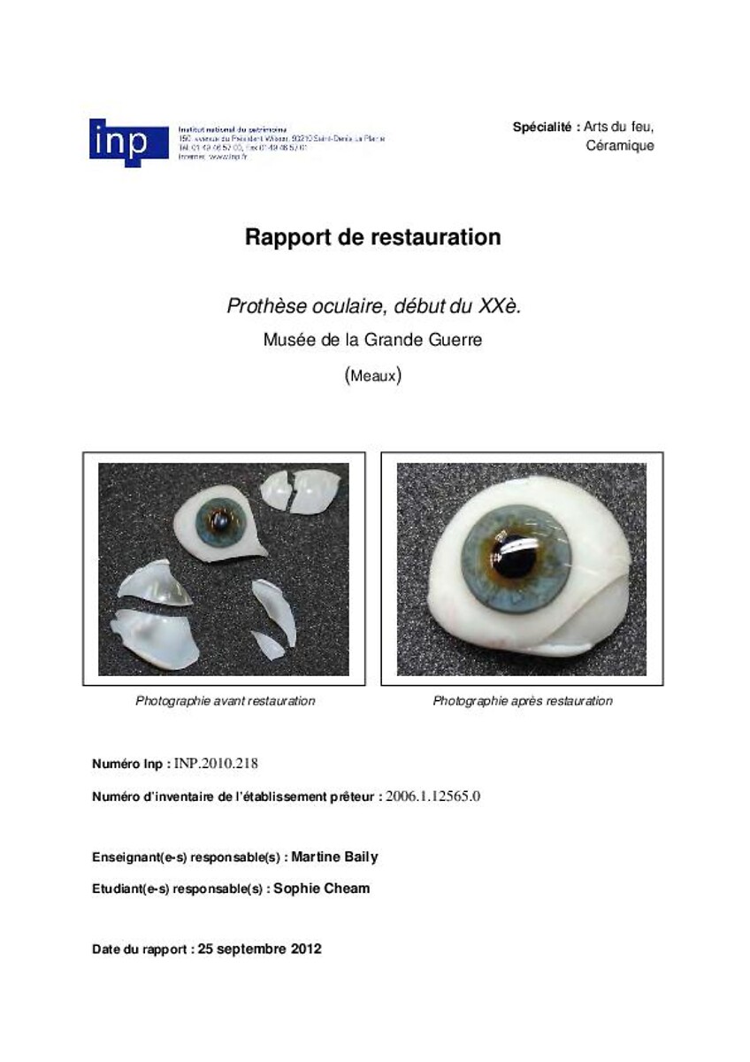Rapport de restauration. Prothèse oculaire, début du Xxe.