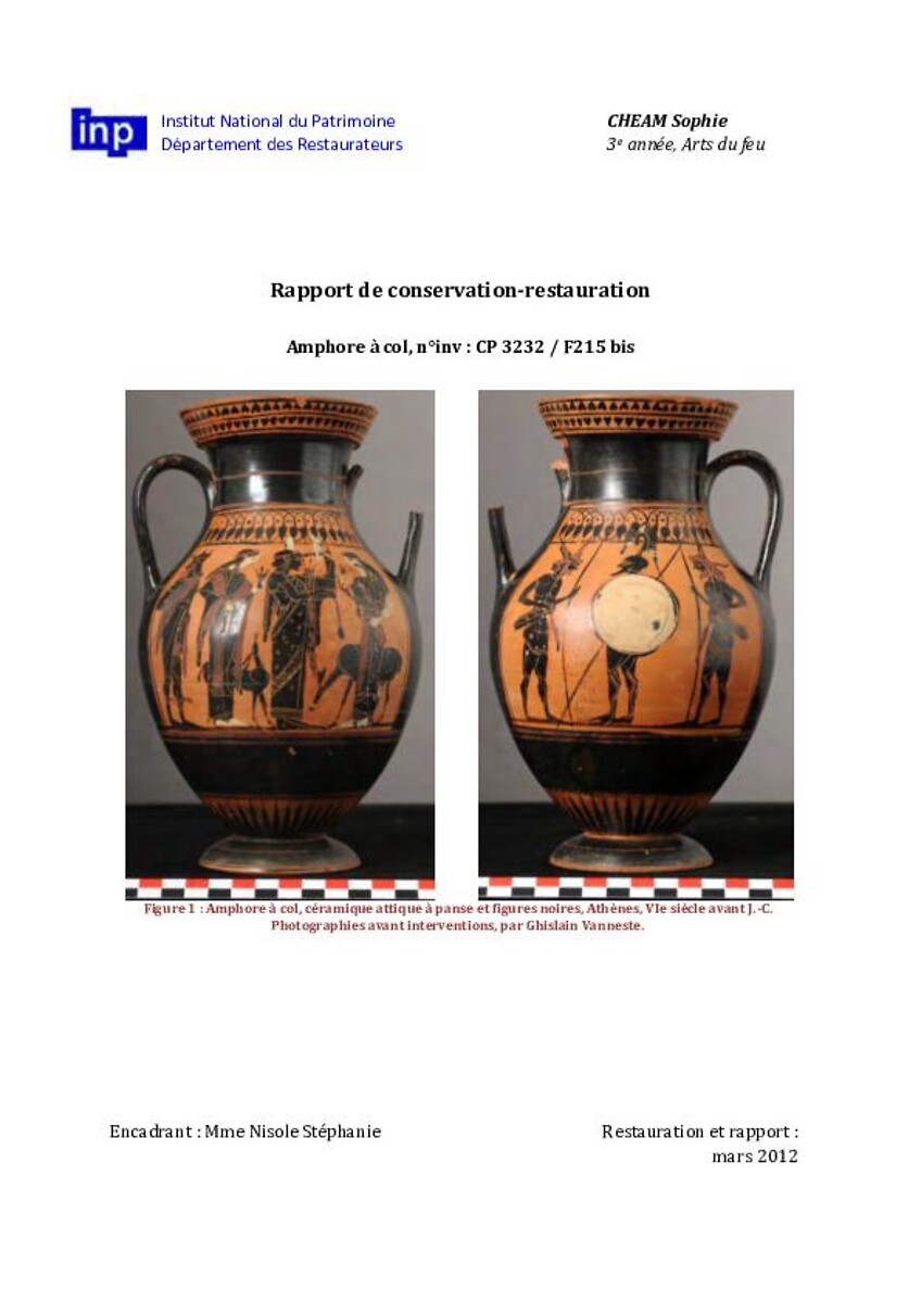 Rapport de restauration : Coquemar (Fouilles du Château de Vincennes)