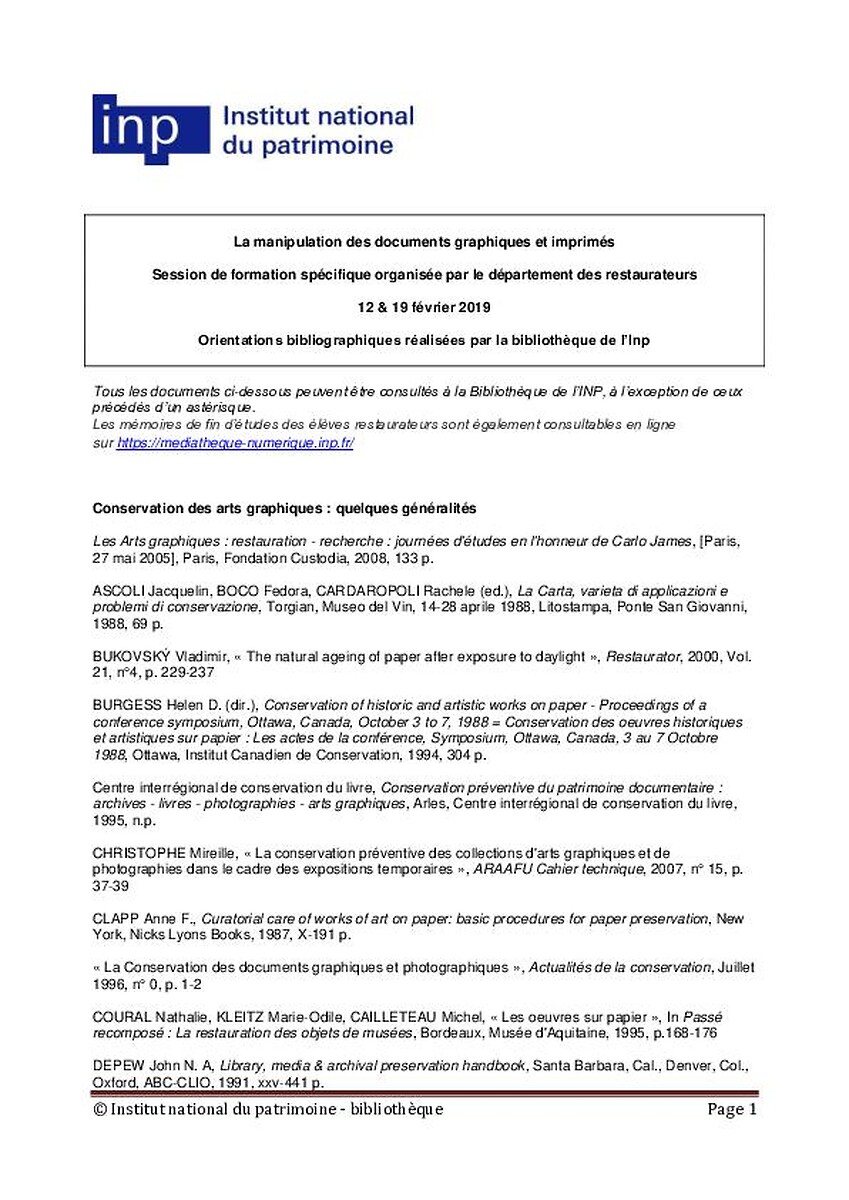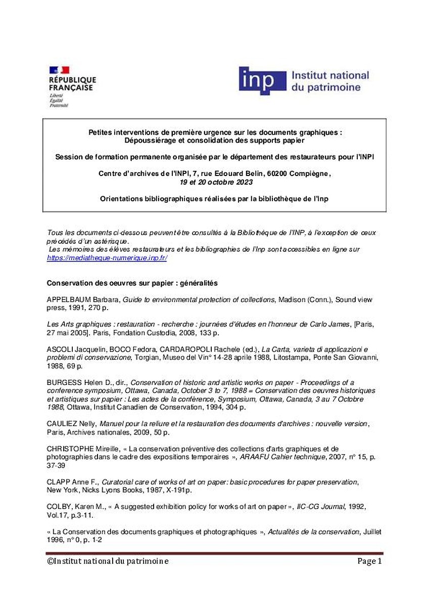 Petites interventions de première urgence sur les documents graphiques : Dépoussiérage et consolidation des supports papier, INPI 2023