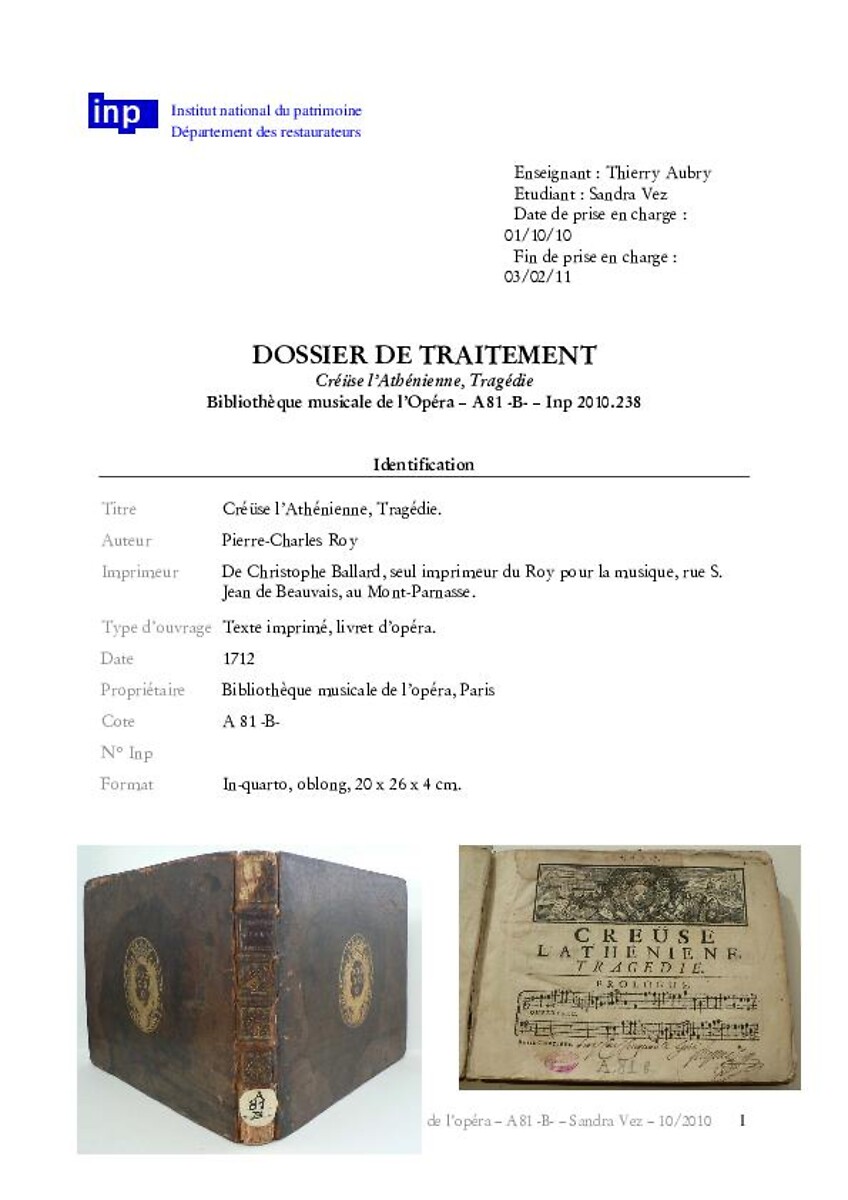 Dossier de traitement. Céüse l'Athénienne, Tragédie.Inp [S.n.]