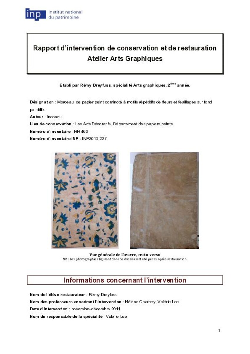 Rapport d’intervention de conservation et de restauration (Sans titre, papier dominoté, Motifs fleurs et feuillages)