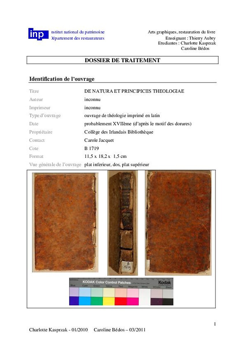 Dossier de traitement: Dictionnaire des arts de peinture [Bib Inp 4460 8° 2/9 e .6 ]