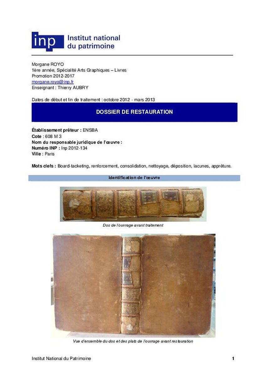 Rapport d’étude préalable à la restauration, Plumier Qadjar [2009.0.776.1 et 2009.0.776.2]