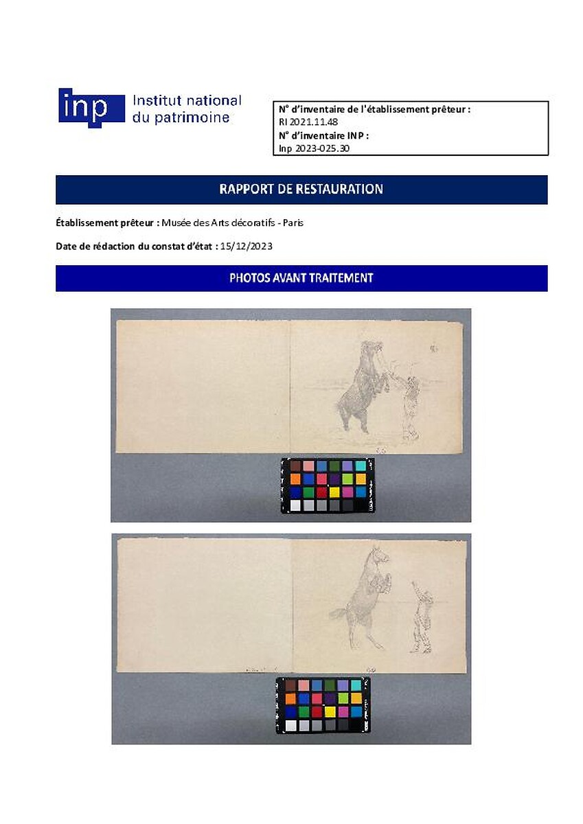 Rapport de restauration : Dessin - Attribué à : René Peyrol [30] Feuille d'album