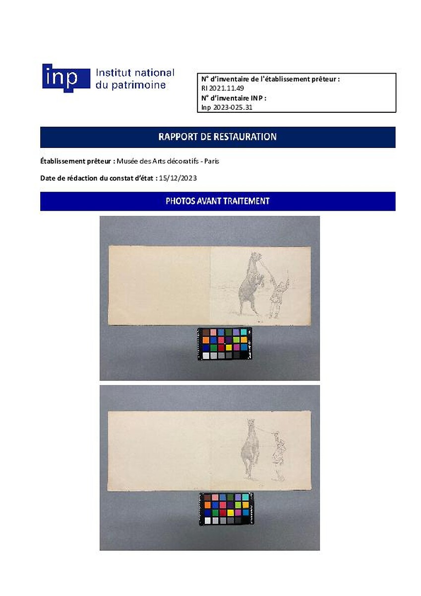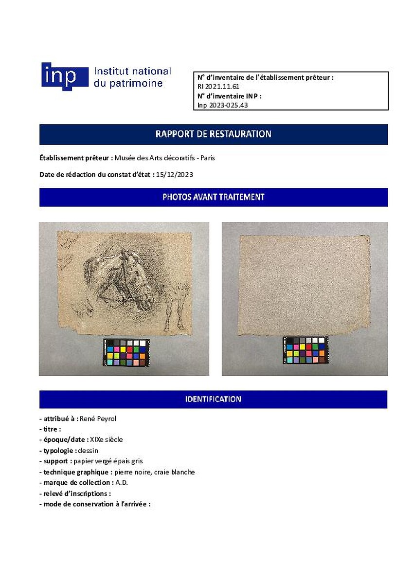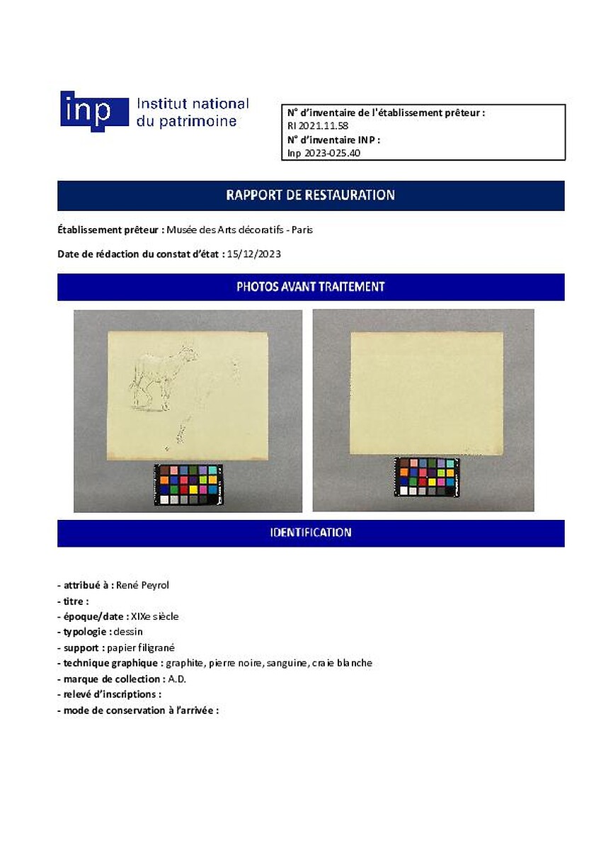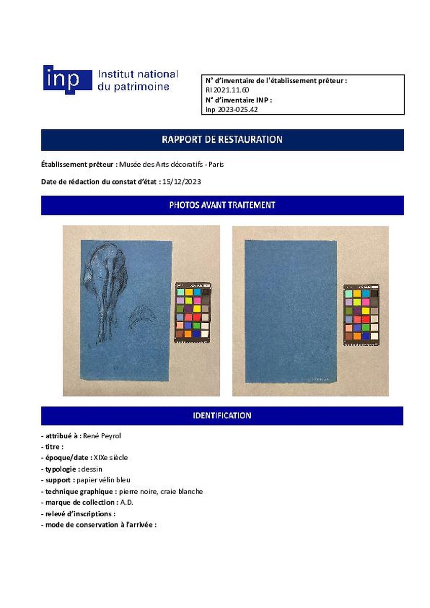 Rapport de restauration : Dessin - Attribué à : René Peyrol [34bis] [Feuille non utilisée]