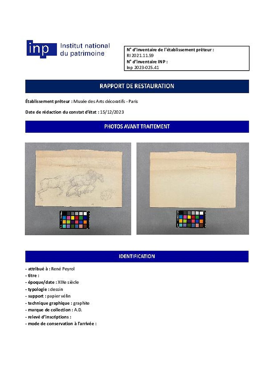 Rapport de restauration : Dessin - Attribué à : René Peyrol [41]
