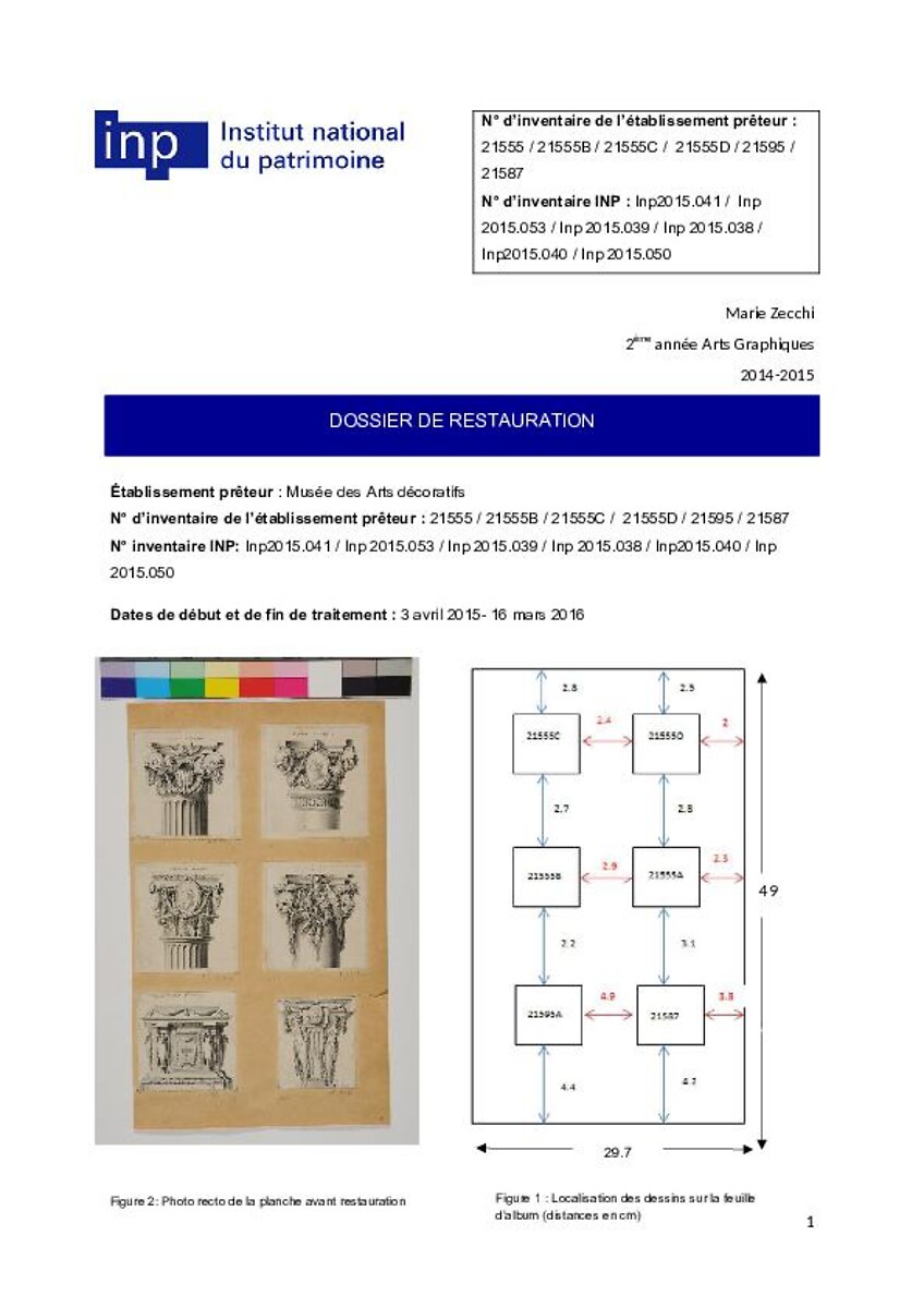 Dossier de restauration (Neuf dessins du MAD) [Ginp 198]