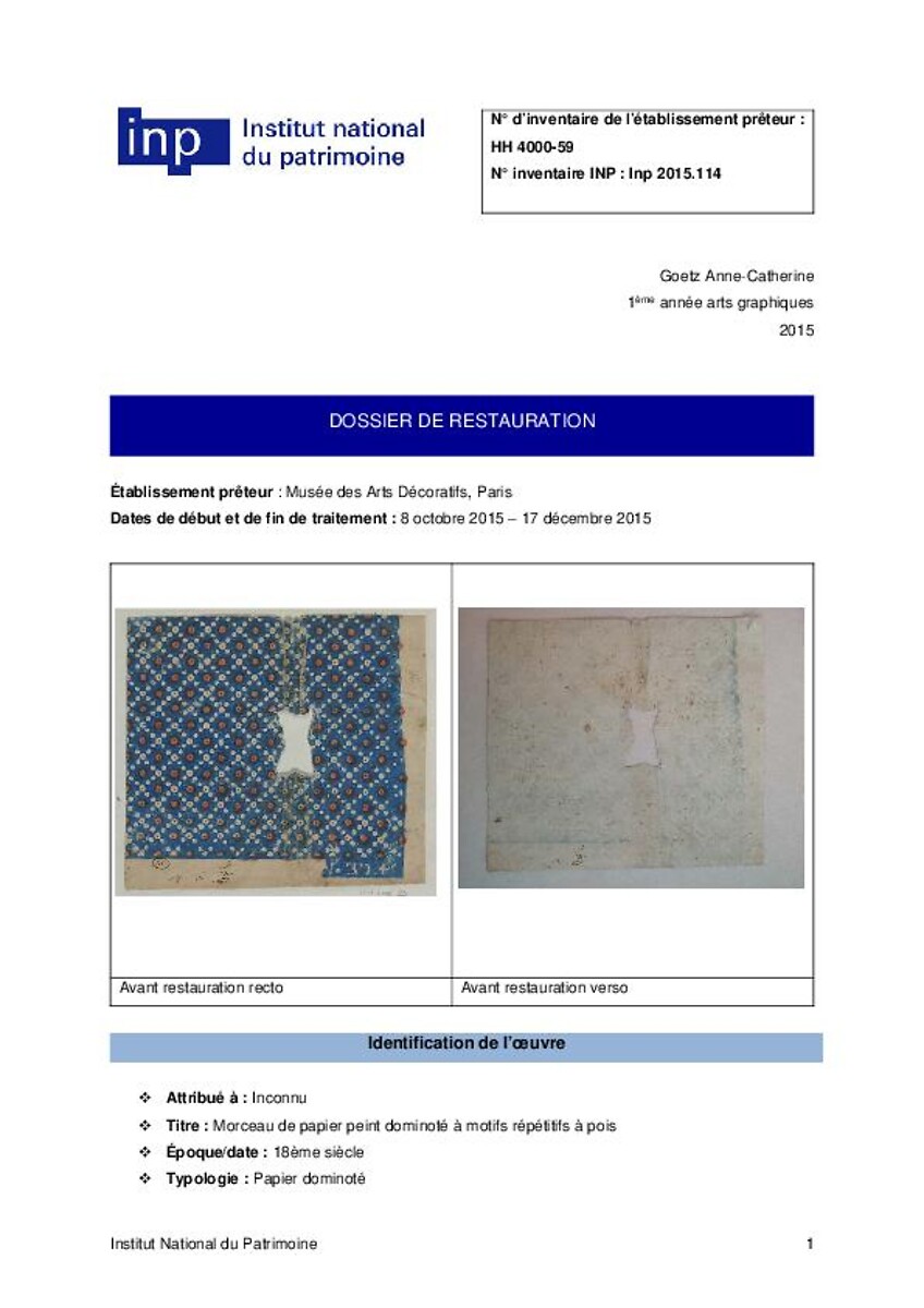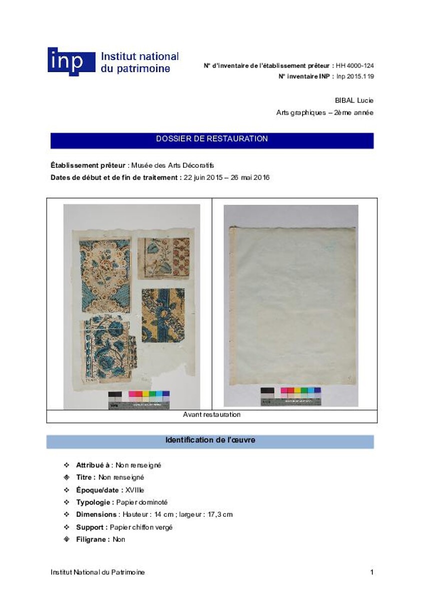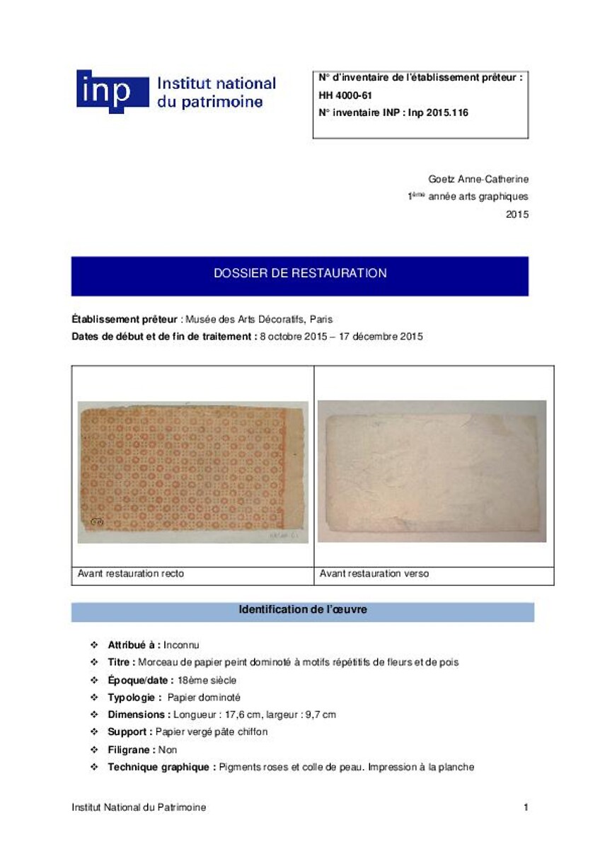 Dossier de restauration: papier dominoté (motifs fleurs et pos), SA-ans titre