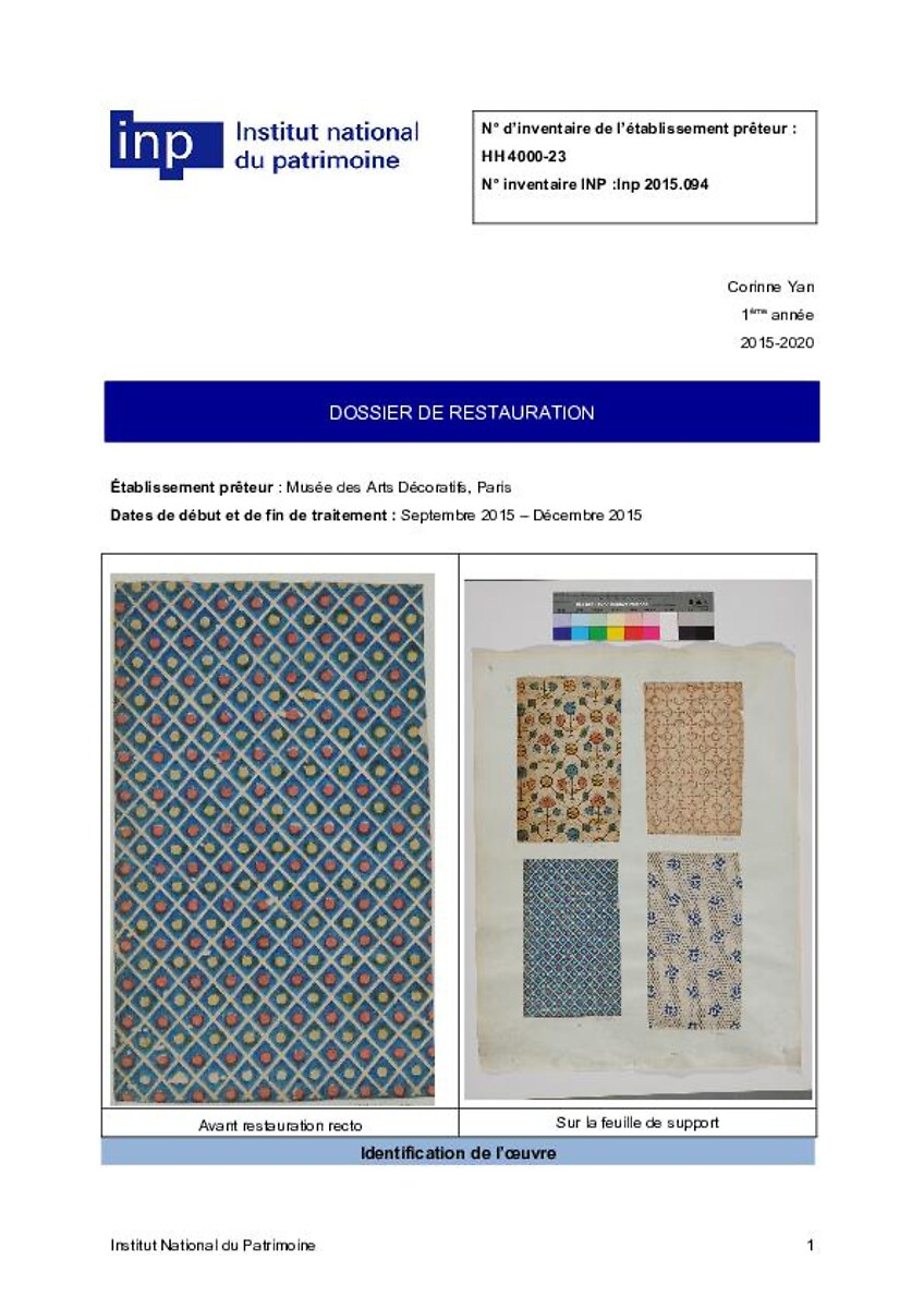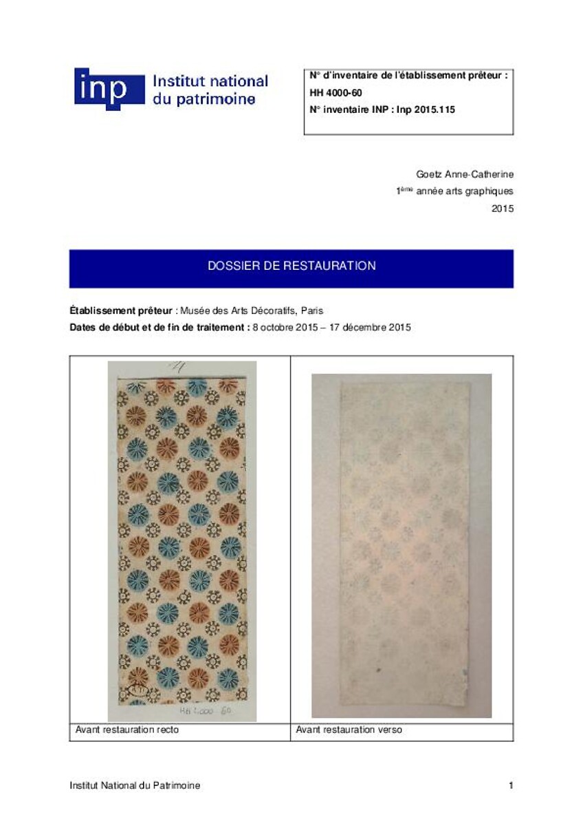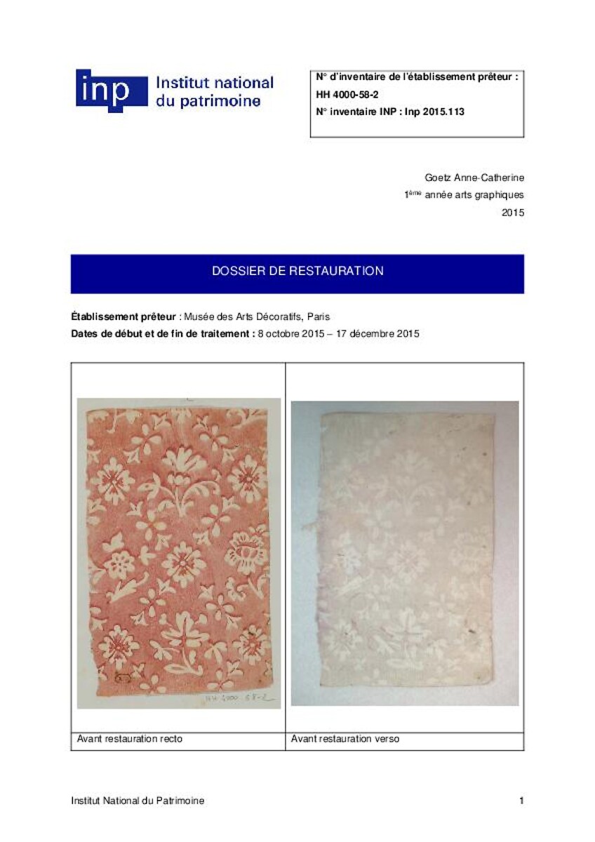 Dossier de restauration: Sans titre, papier dominoté (motifs floraux)