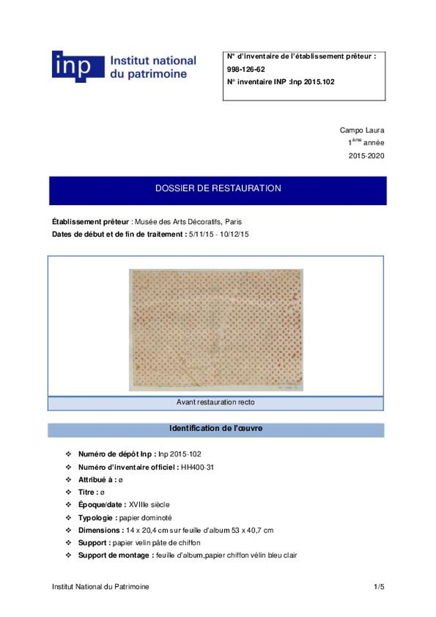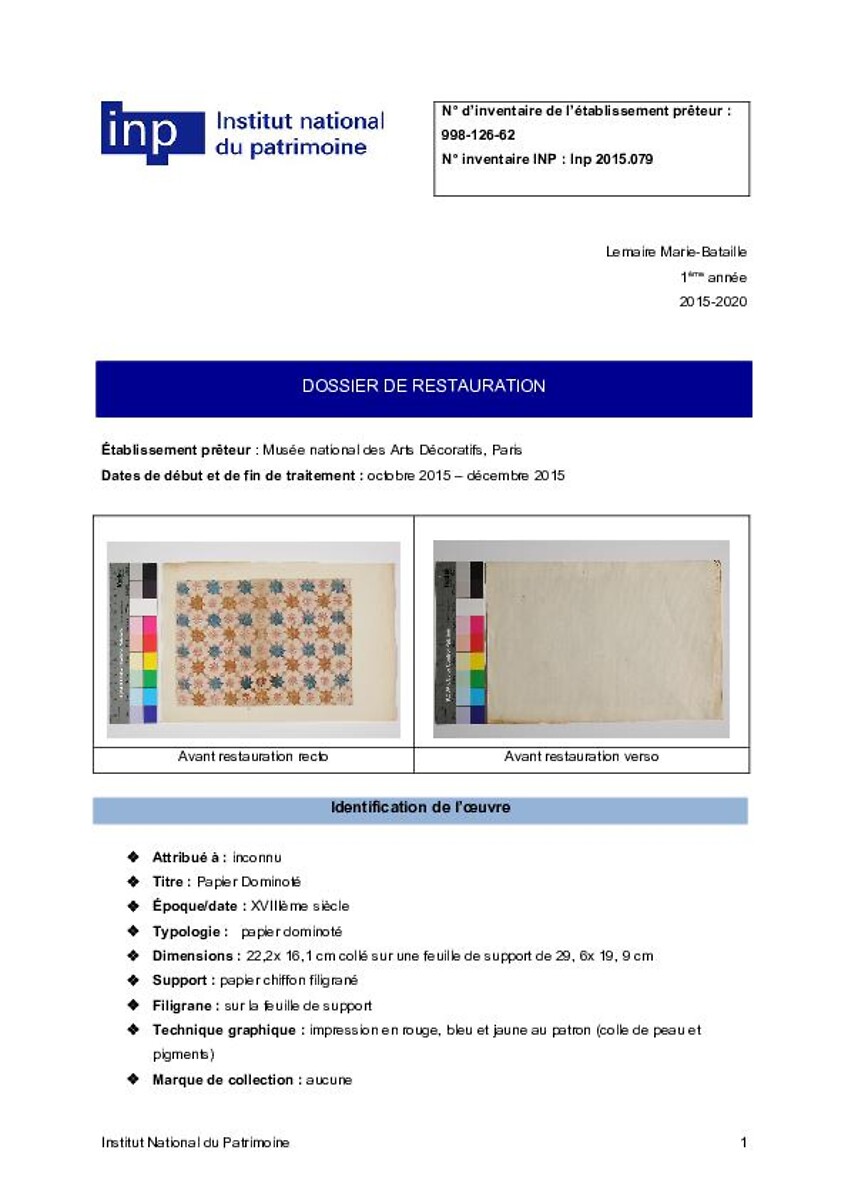 Dossier de restauration (papier dominoté)