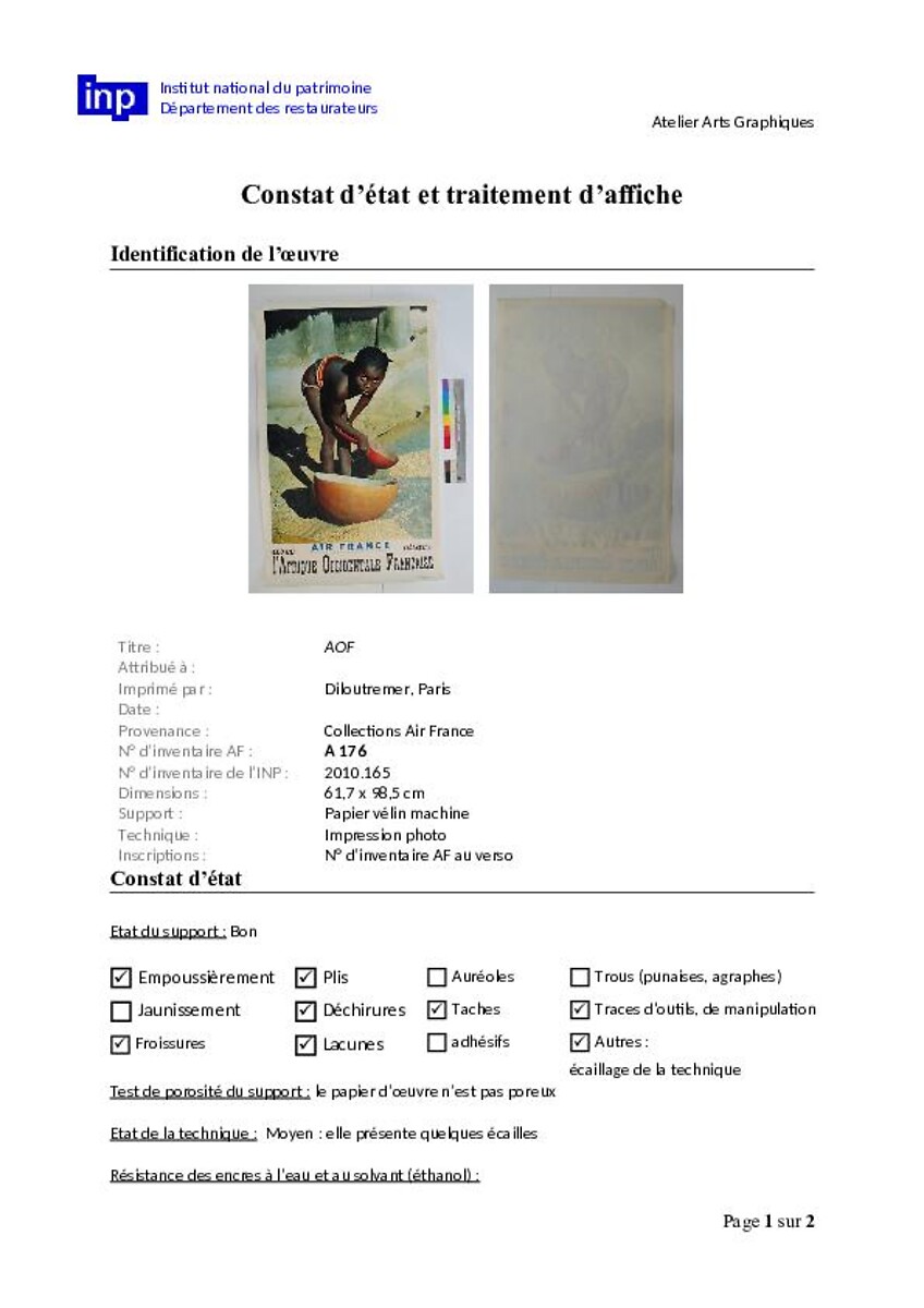 Constat d'état et traitement d'affiche AOF (Affiches Air FRANCE)