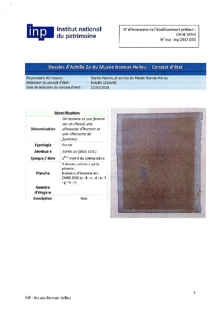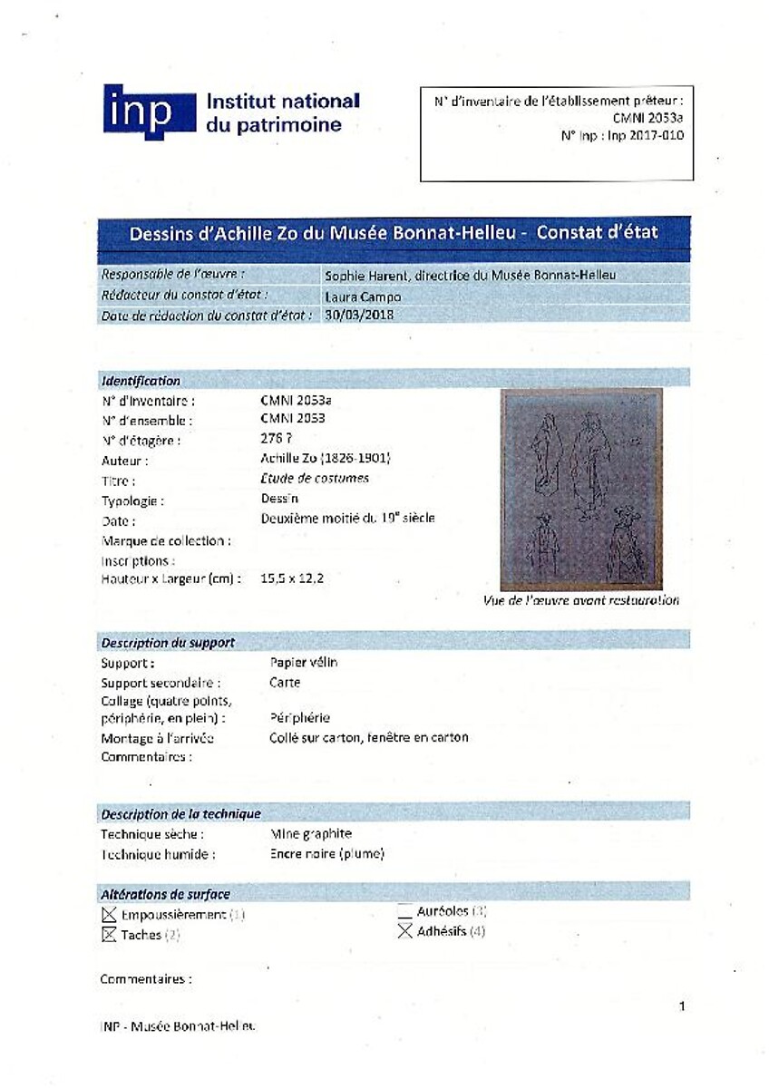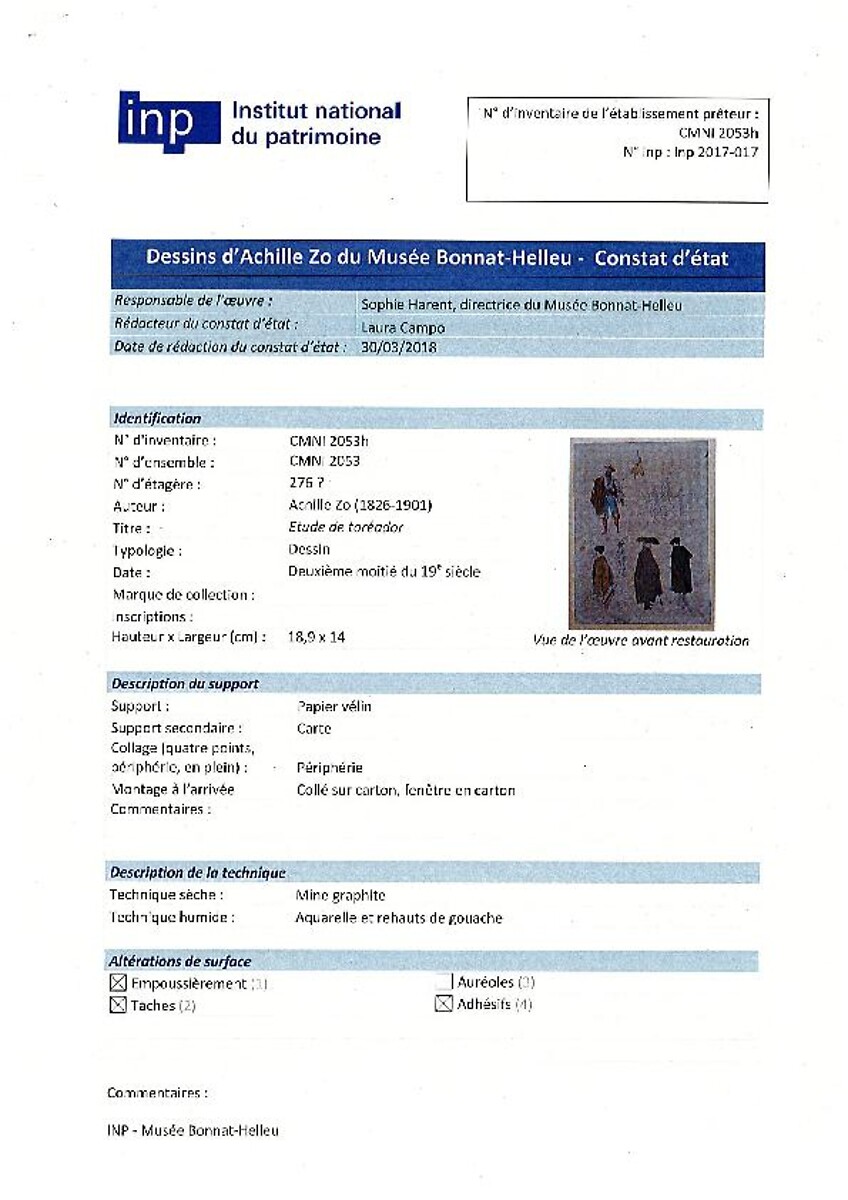 Constat d'état et traitement Etude de toreador (dessin attribué à Achille ZO)