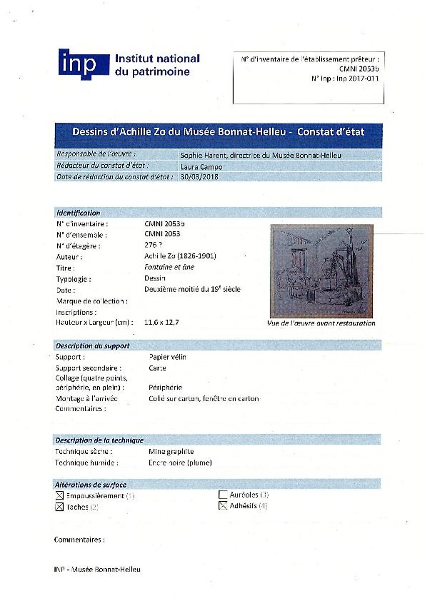 Constat d'état et traitement : Etude d'homme et d'âne, (Dessin attribué à Achille Zo)