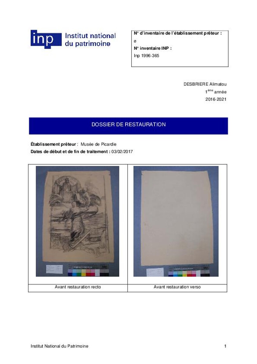 Dossier de restauration (Dessin du MAD)