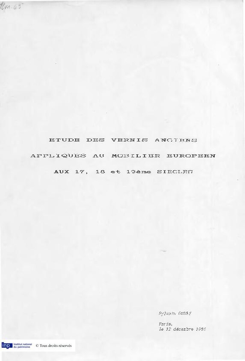Etude des vernis anciens appliqués au mobilier européen aux XVIIe, XVIIIe et XIXe siècles : restauration d'un meuble en acajou du musée des Arts Décoratifs