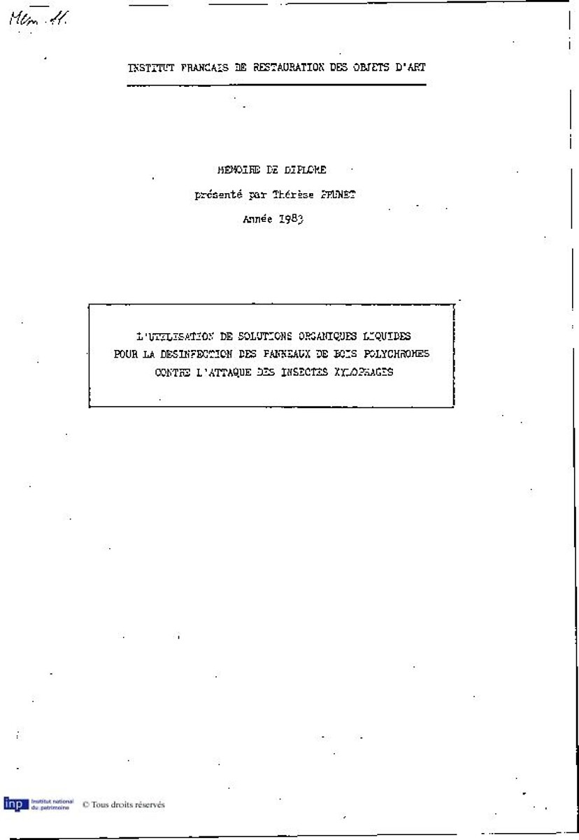 L'utilisation de solutions organiques liquides pour la désinfection des panneaux de bois polychromes contre l'attaque des insectes xylophages