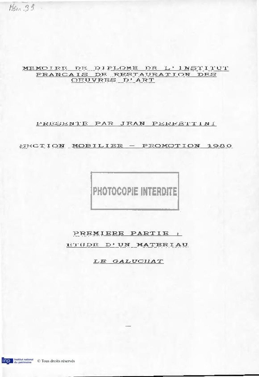 Etude d'un matériau : le galuchat Compte rendu de restauration d'une table grillagée estampilée L.Peridiez , 1987