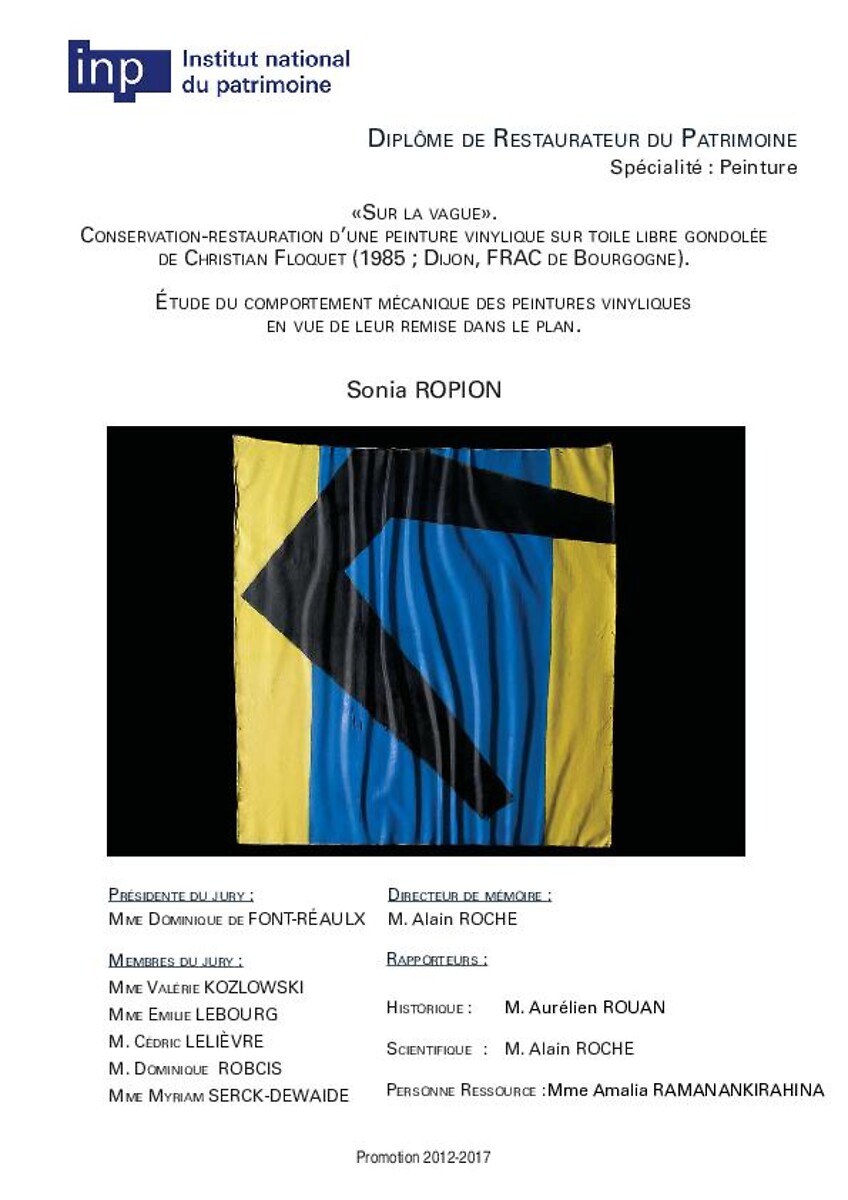« Sur la vague. » Conservation-restauration d'une peinture vinylique sur toile libre gondolée de Christian Floquet (1985 ; Dijon, FRAC Bourgogne) : étude du comportement mécanique des peintures vinyliques en vue de leur remise dans le plan