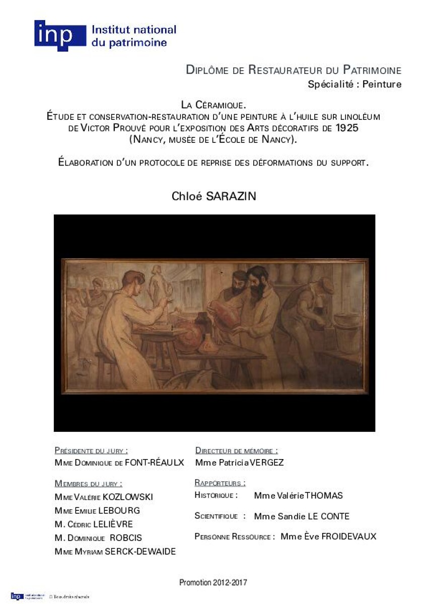 La Céramique. Etude et conservation-restauration d'une peinture à l'huile sur linoléum de Victor Prouvé pour l'exposition des Arts décoratifs de 1925 (Nancy, Musée de l'Ecole de Nancy) : élaboration d'un protocole de reprise des déformations du support…