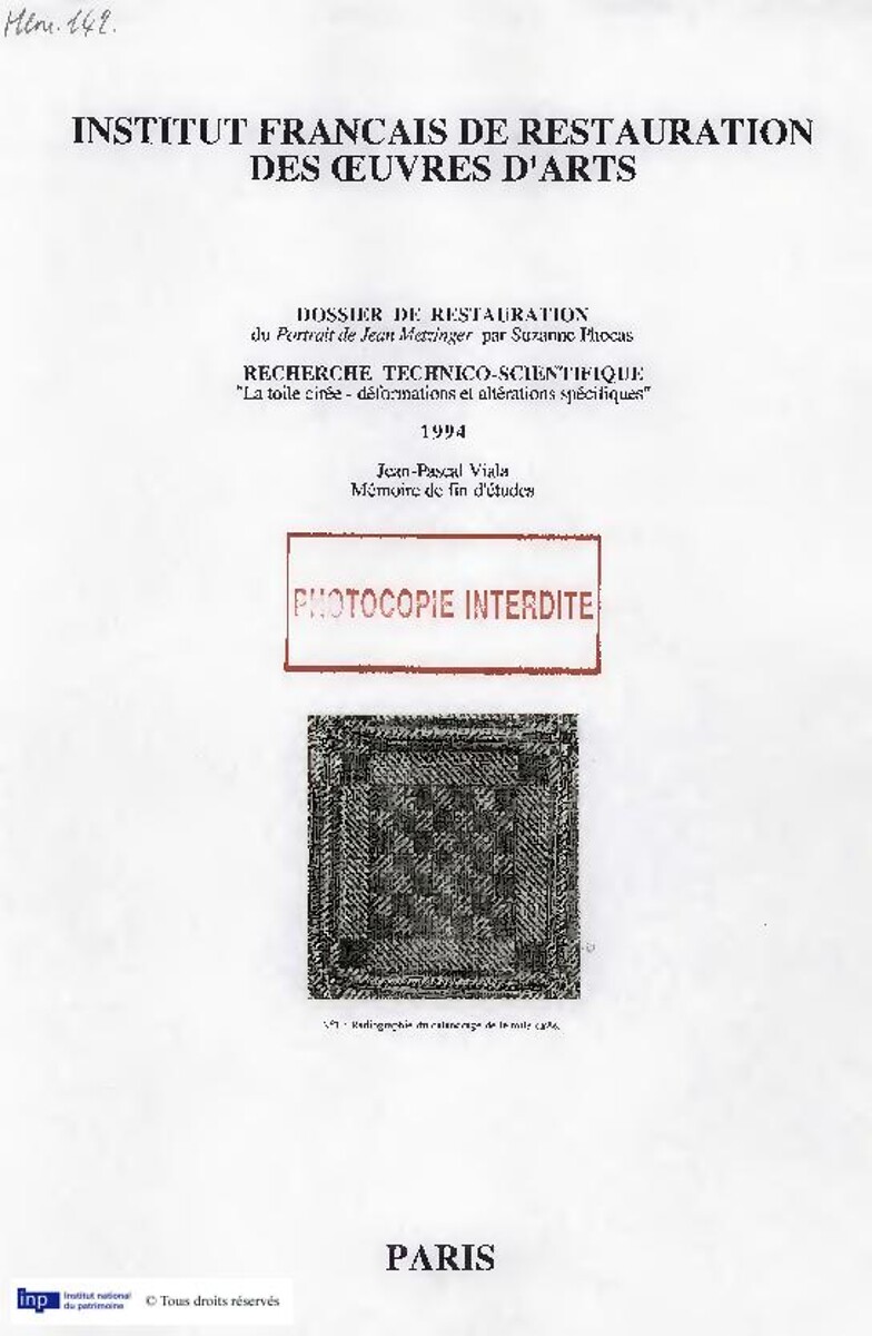Etude des mécanismes de dilatation et de contraction d'une couche picturale sur un support particulier : Restauration d'un tableau de Suzanne Phocas, "Portrait de Jean Metzinger"