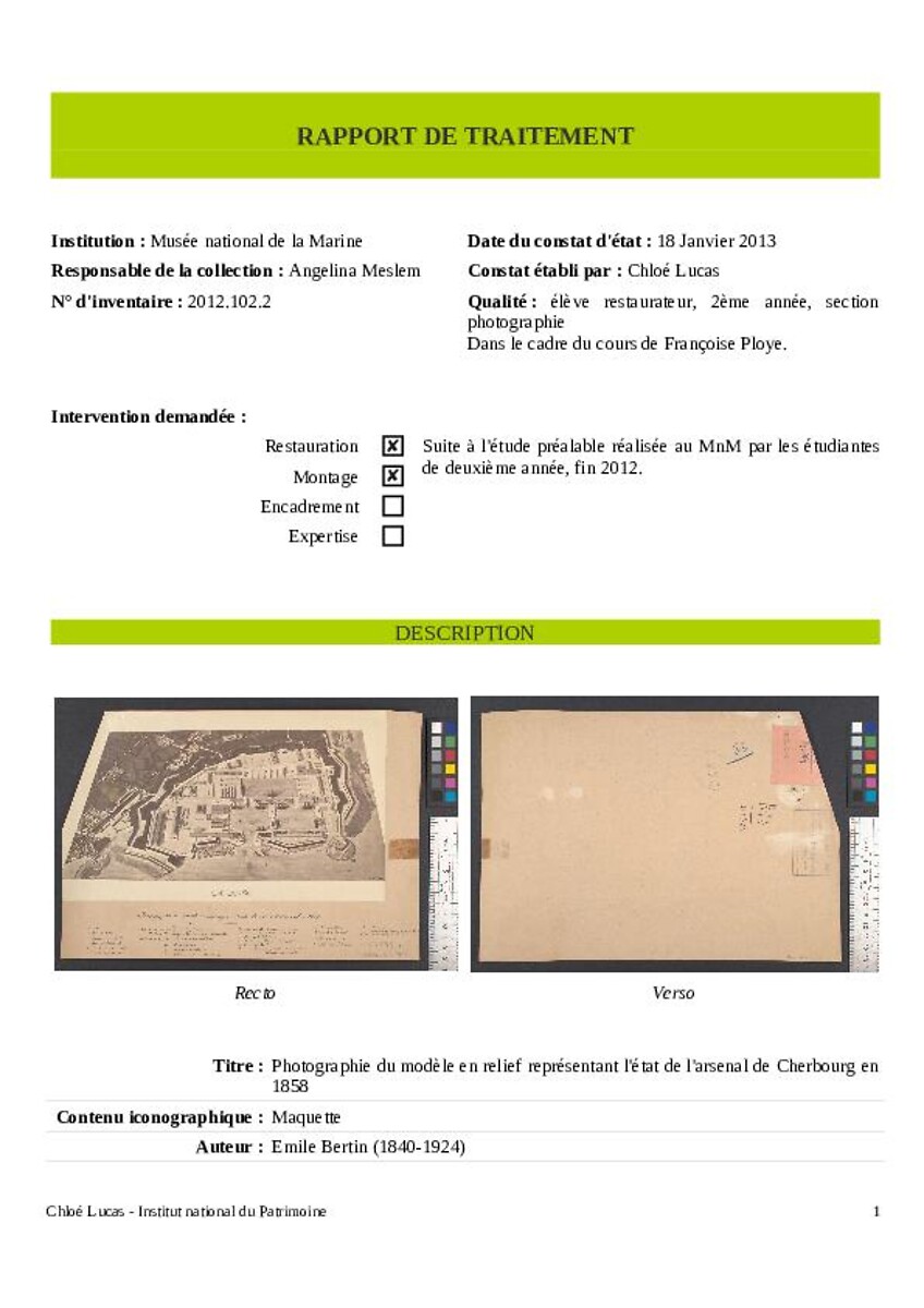rapport de traitement (Photographie du modèle en relief représentant l'état de l'arsenal de C herbourg en 1858)