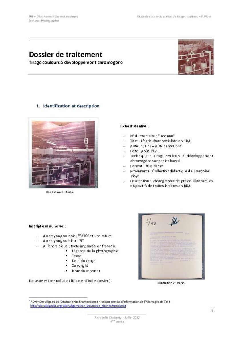 Rapport de traitement de trois autochromes du fond SPEOS [S.n.]